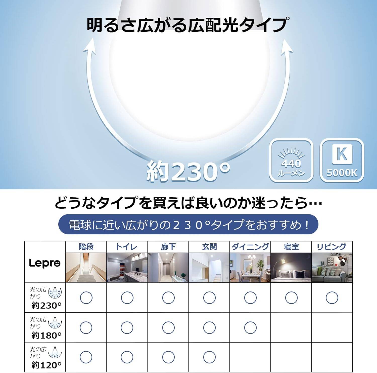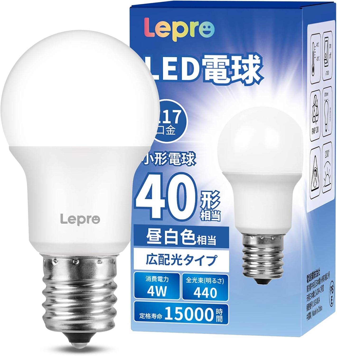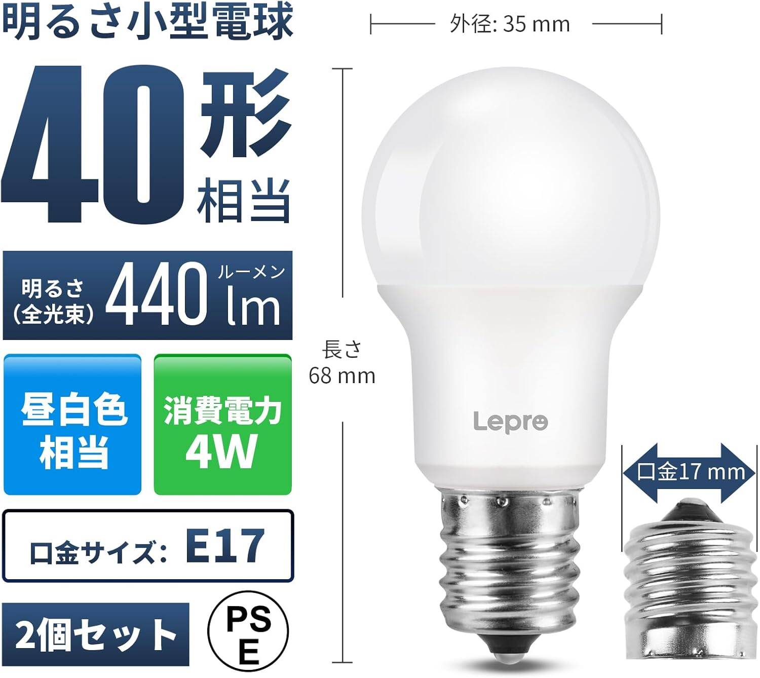 Lepro LED電球 E17 ミニクリプトン電球 40W形 440lm 昼白色 5000K 非調光型 ミニクリプトン LED小形電球 広配光タイプ 高演色性 PSE認証済み 密閉器具対応 省エネ キッチン 台所 トイレ リビング ダイニング 脱衣所 寝室 廊下 玄関照明用 小型電球 2個入り[100001-NW-JP-2]