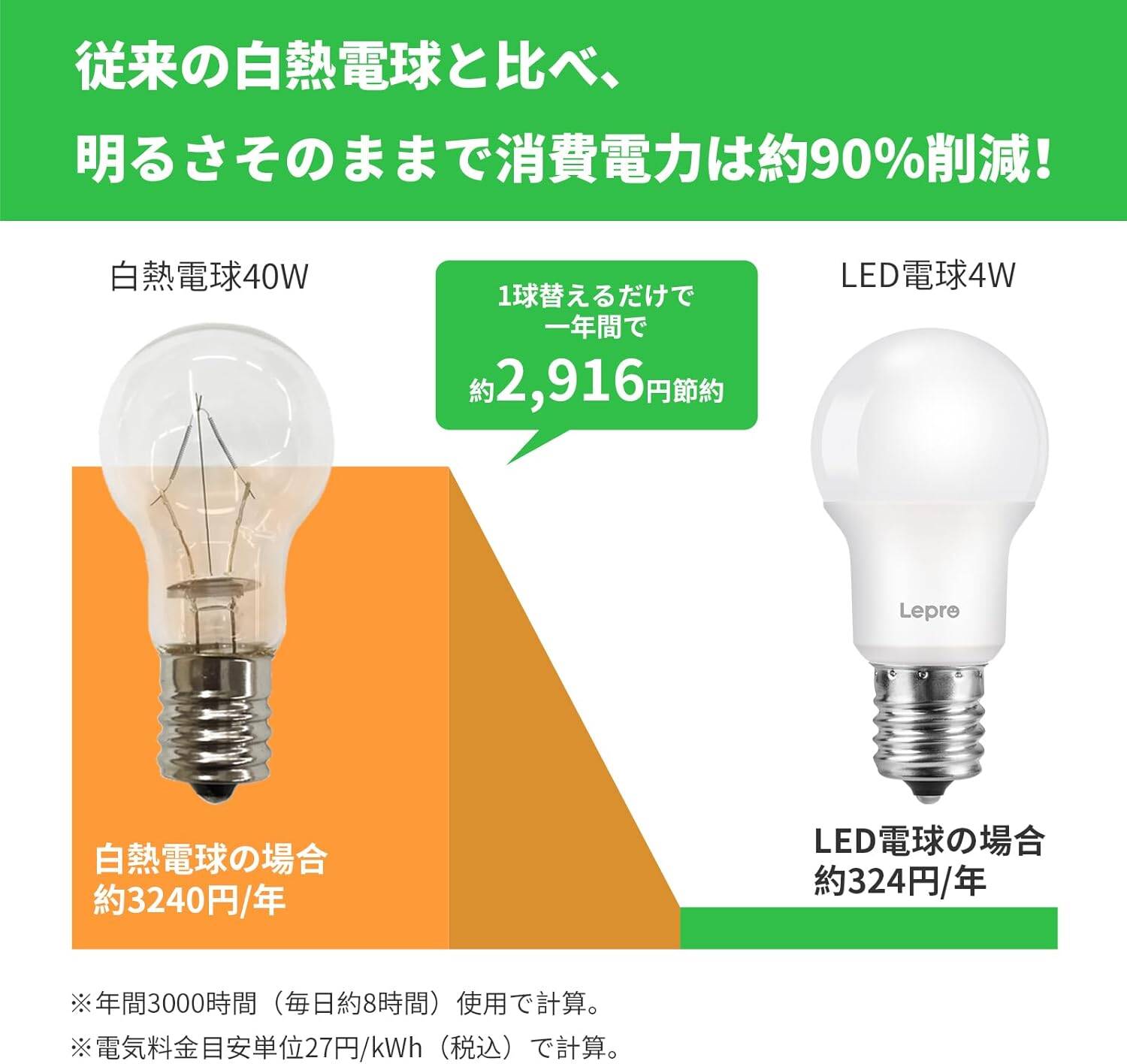 - 定格消費電力:4W(ミニクリプトン電球40W形相当)
