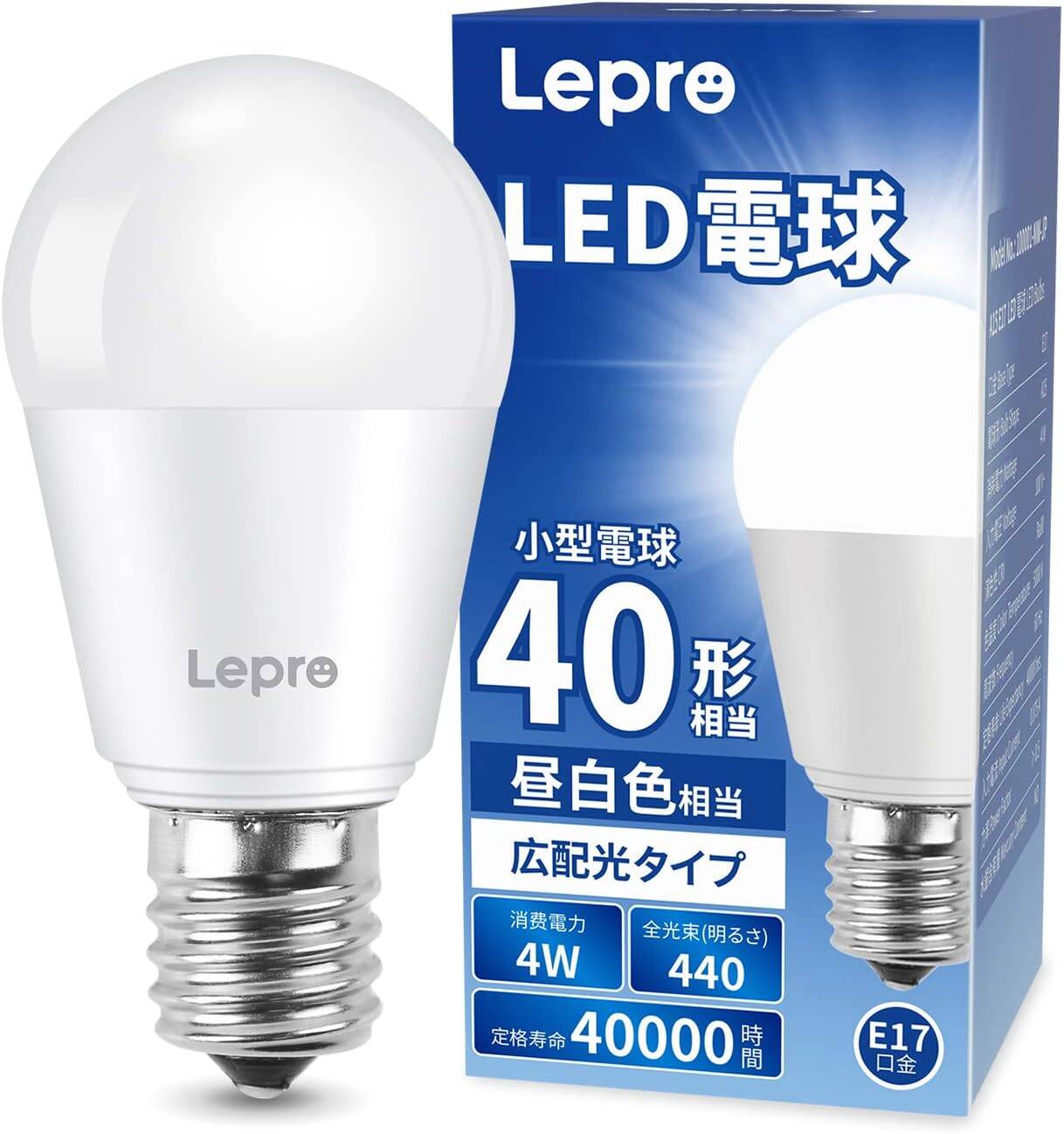 Lepro LED電球 E17 ミニクリプトン電球 40W形 440lm 昼白色 5000K 非調光型 ミニクリプトン LED小形電球 広配光タイプ 高演色性 PSE認証済み 密閉器具対応 省エネ キッチン 台所 トイレ リビング ダイニング 脱衣所 寝室 廊下 玄関照明用 小型電球 6個入り[100001-NW-JP-6]