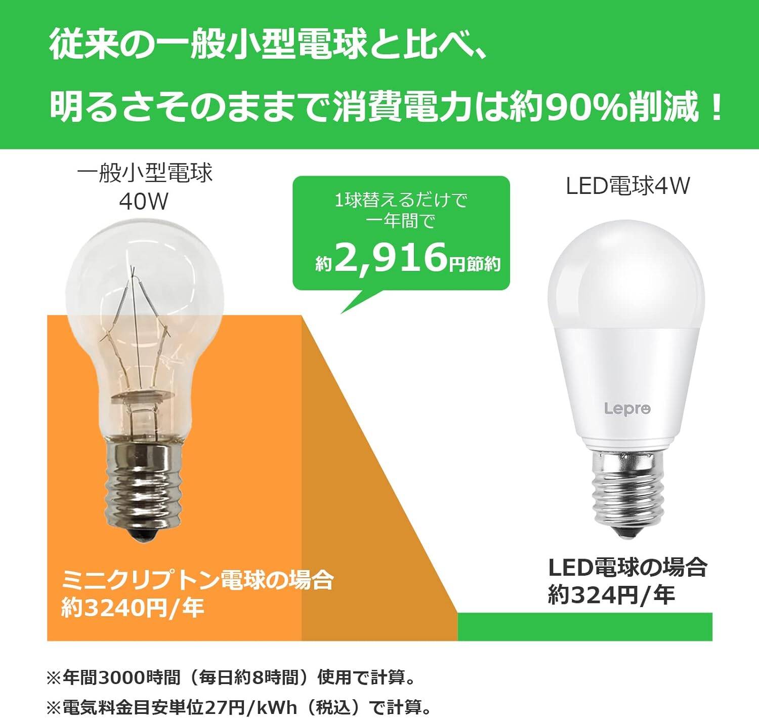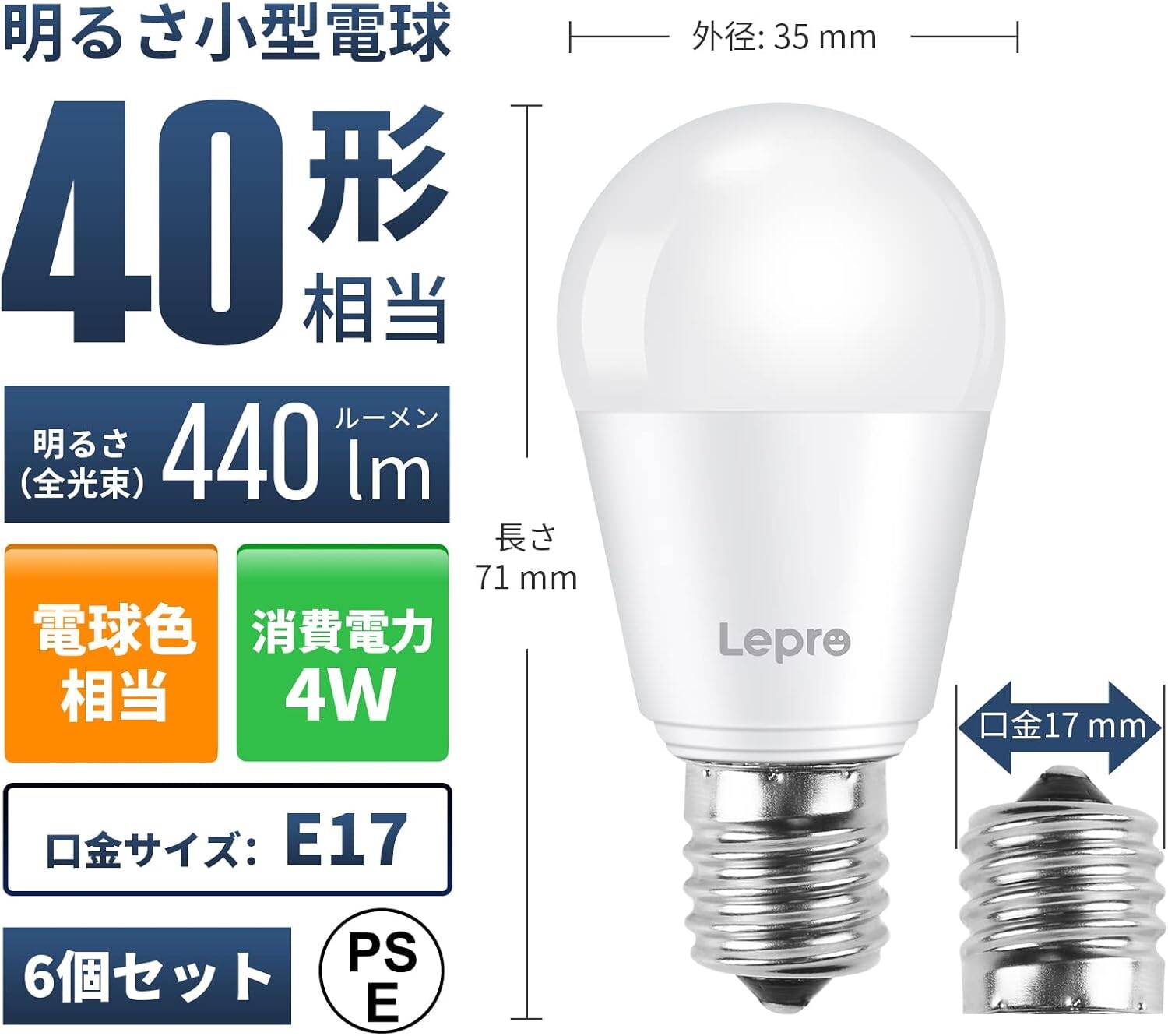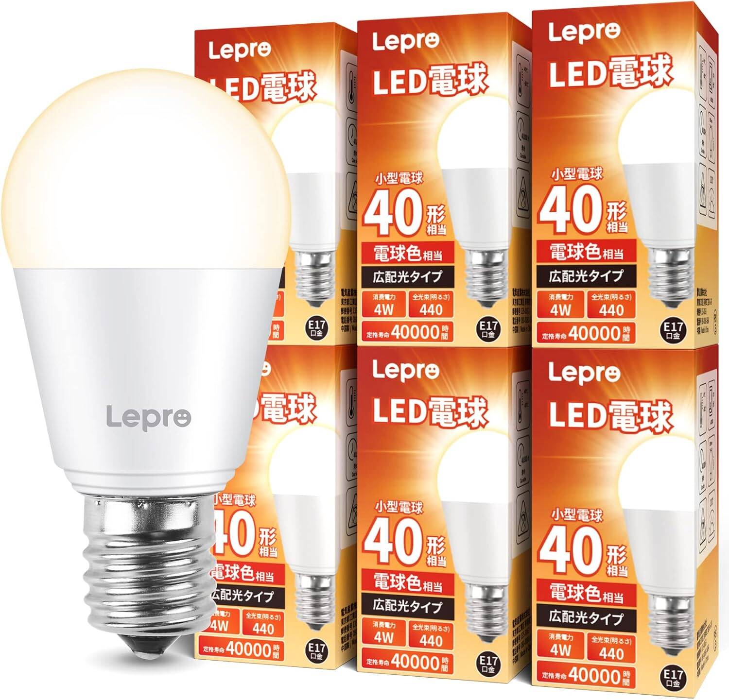 Lepro LED電球 E17口金 40W形 440lm 電球色 3000K 非調光型 ミニクリプトン ミニランプ形電球 広配光タイプ 高演色性 PSE認証済み 密閉器具対応 省エネ キッチン 台所 トイレ リビング ダイニング 脱衣所 寝室 廊下 玄関照明用 小型電球 6個入[100001-WW-JP-6]