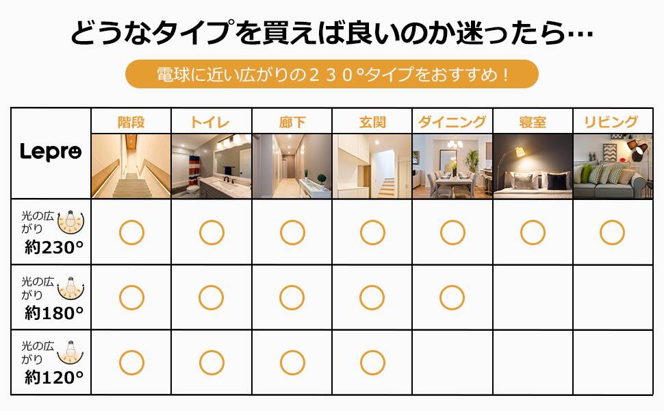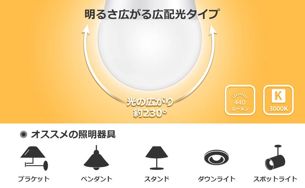 - 【広配光タイプ・高演色性】心が落ち着いた電球色で、照射角度は230°に達し、広範囲を明るく照らしてくれます。また、放熱性に優れ、密閉形器具にも利用可能で、ダウンライト、ウォールランプ、ペンダント、シーリング、シャンデリア、スタンド、ブラケットなど幅広く使用できます。更に、安全安心な照明環境を提供だけでなく、電球の演色性もRa80を超え、色彩を鮮明に表現し、美しい空間を演出します。トイレ、浴室、キッチンなど切れたら困る場所に活用され、帰省する時、両親に喜ばれるギフトです