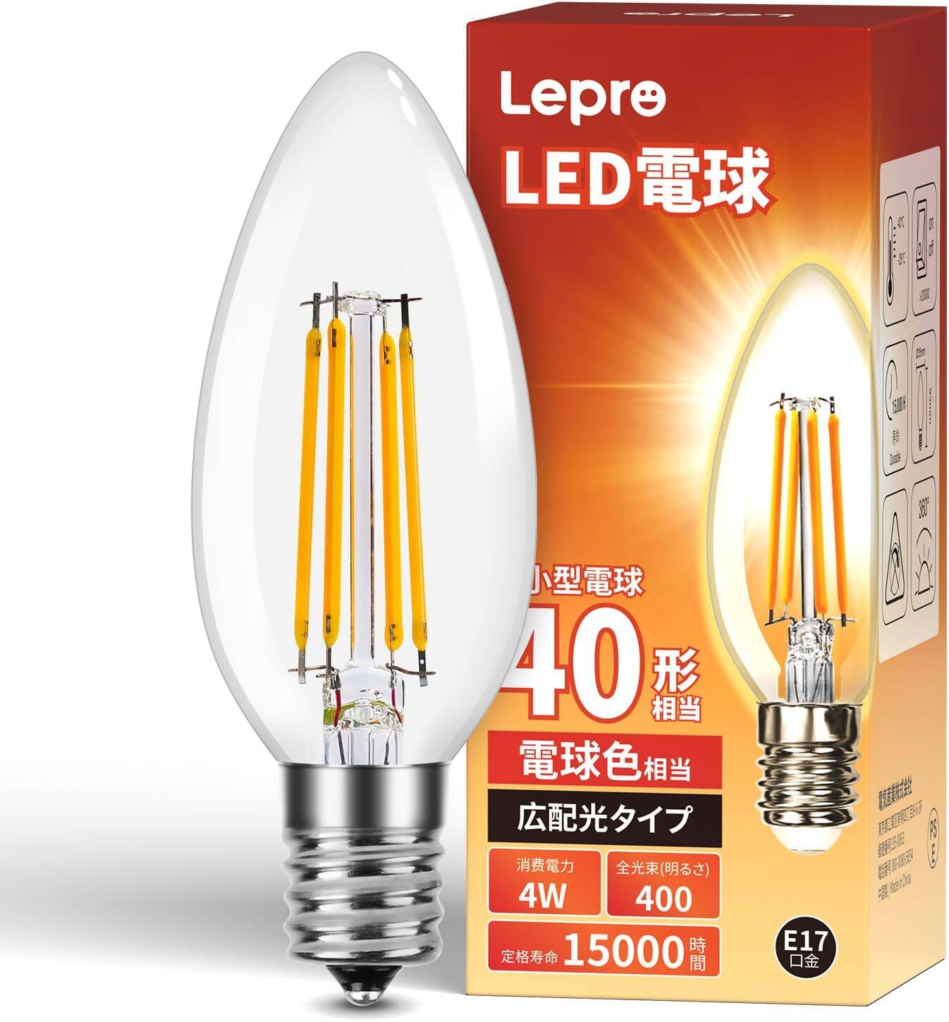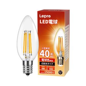 Lepro LED電球 E17 全方向 40W形相当 電球色 シャンデリア電球 非調光型 口金直径17mm C35 フィラメント電球 高演色性 クリアタイプ 密閉器具対応 4W 省エネ シャンデリア風 蝋燭型 レトロ電球 キャンドル電球 led照明 日本PSE認証済 1個入り[100004-WW-JP]