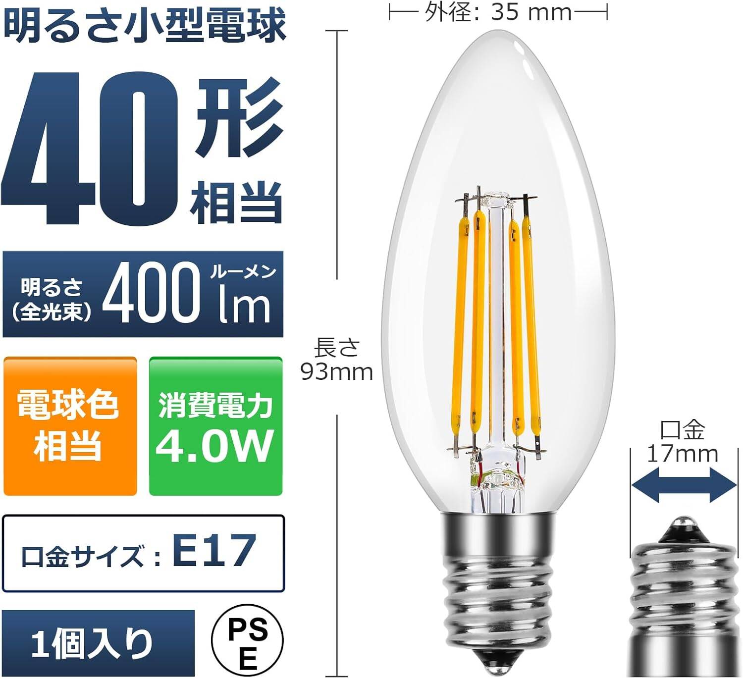 | 電球の形状 | C35 | 口金 | E17 |