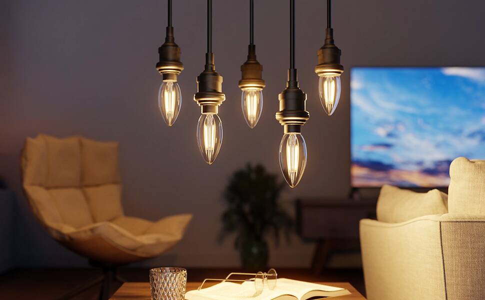 シャンデリアやペンダントライトに適用します。LED電球の性能を持ちながら、昔ながらのクリア電球の美しさも保っています。フィラメントの灯りがレトロで落ち着いた空間を作ります。