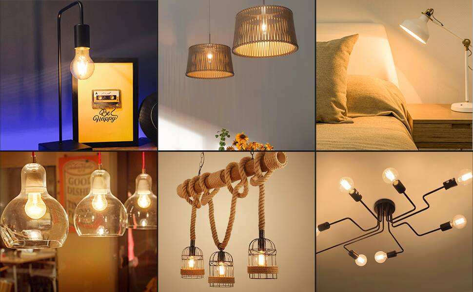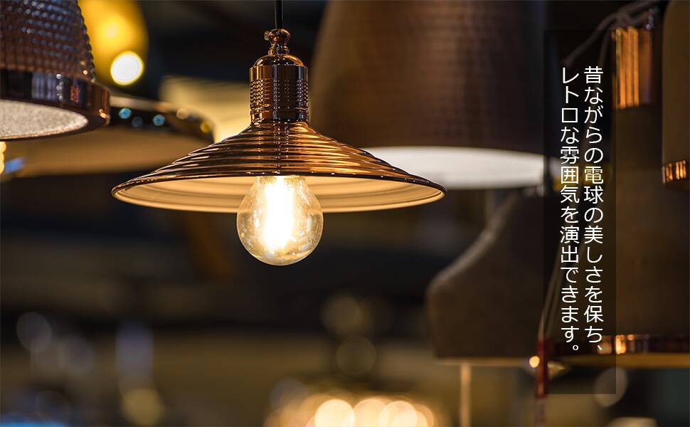 - 【360°全方向 | 電球色2700k】電球の演色性はRa80以上に達し、物の本当の色を自然的に綺麗に再現できます。光は柔らかくて繊細で、アンティーク風で落ち着いた雰囲気を作り出します。照射角度は360°に達し、広範囲を明るく照らし、階段・玄関・廊下・リビング・ダイニング・店舗・レストラン・ホテルなどの照明に最適です。更に、放熱性に優れ、ダウンライト、ウォールランプ、ペンダント、シャンデリア、スタンド、ブラケットなど活用できます