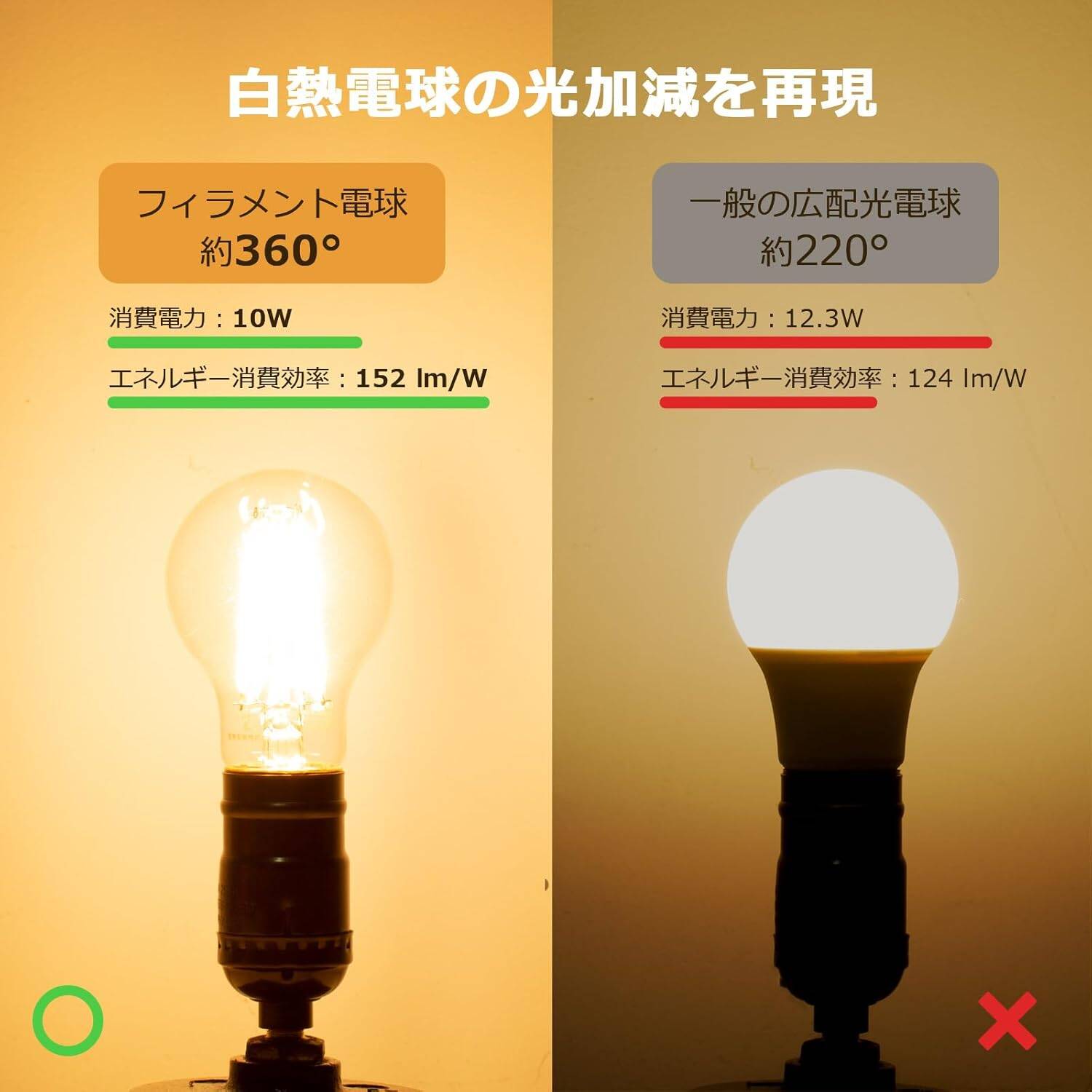- 【360°全方向 | 電球色2700kで雰囲気作り】電球の演色性はRa80以上に達し、物の本当の色を自然的に綺麗に再現できます。光は柔らかくて繊細で、アンティーク風で落ち着いた雰囲気を作り出します。照照射角度は360°に達し、広範囲を明るく照らし、階段・玄関・廊下・リビング・ダイニング・店舗・レストラン・ホテルなどの照明に最適です。更に、放熱性に優れ、ダウンライト、ウォールランプ、ペンダント、シャンデリア、スタンド、ブラケットなど活用できます。