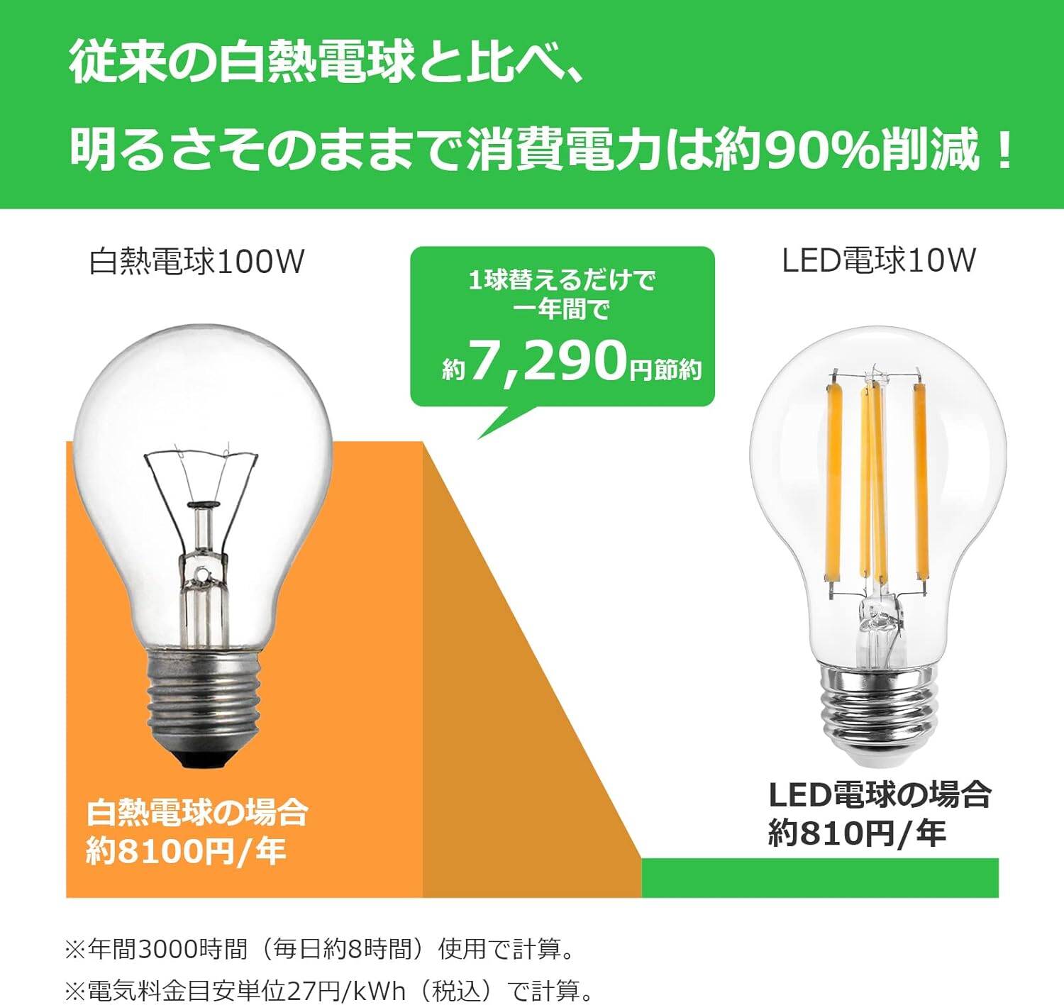 ■ 省エネ:従来の100W白熱電球と比べて、同じ明るさで消費電力は僅か10W、約90%削減できます
