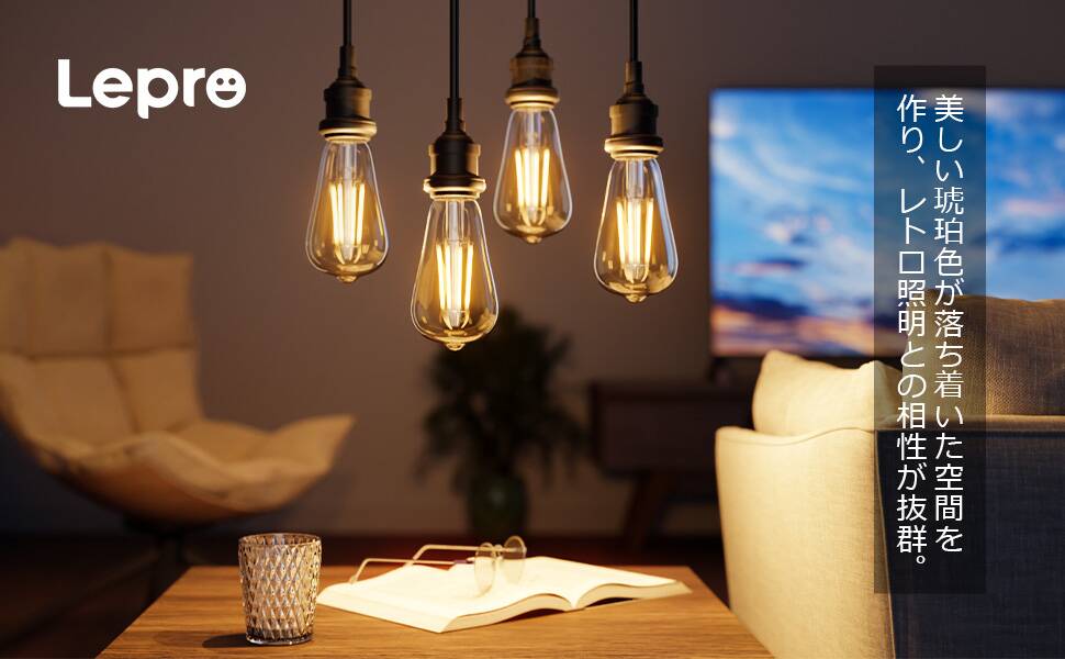 LEDエジソンランプ、お部屋を明るく、綺麗に照らし、落ち着きのある雰囲気を作ってくれます。
