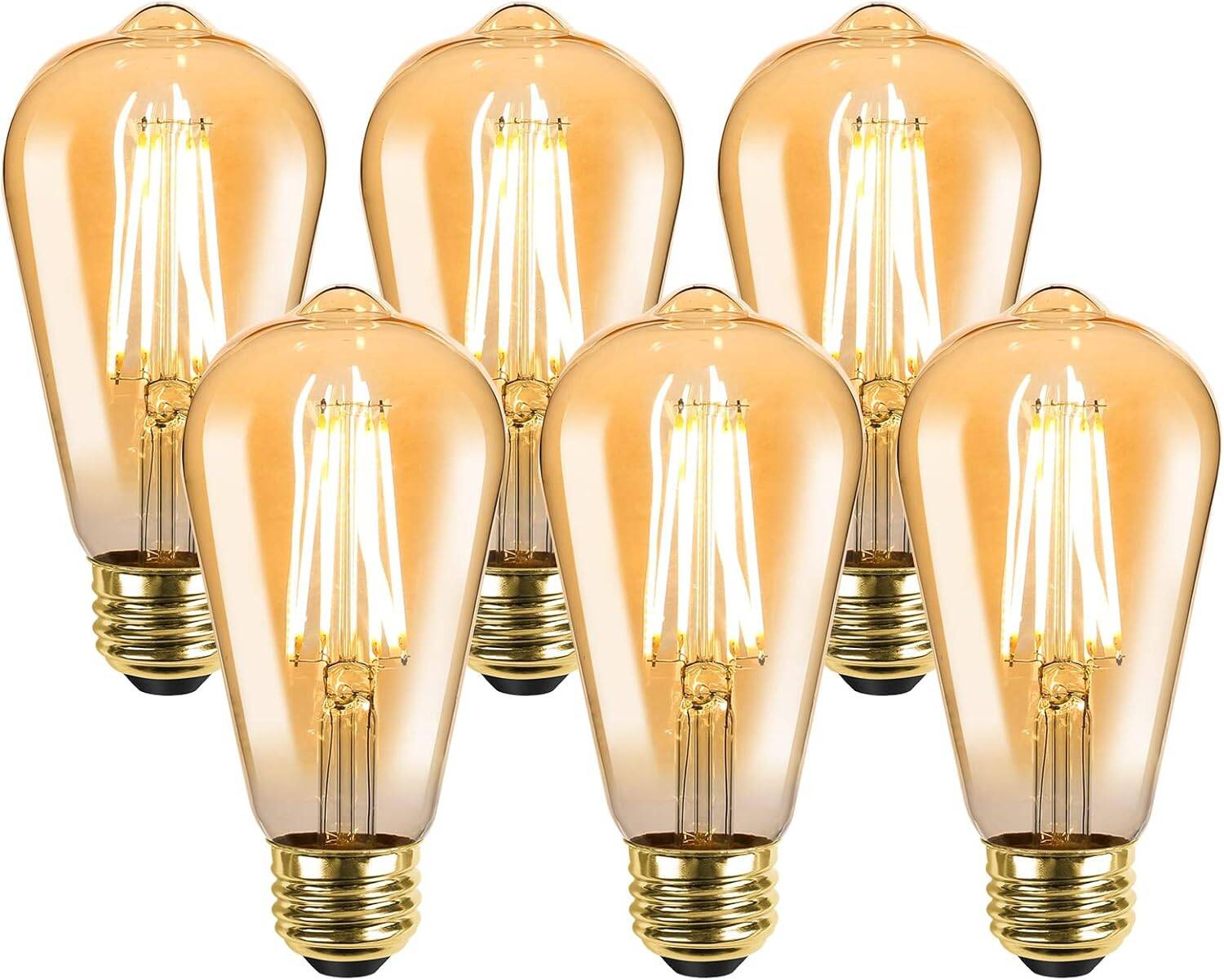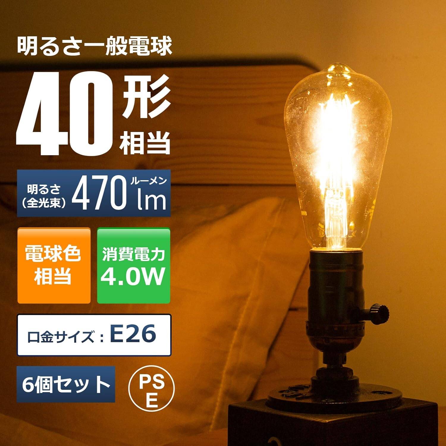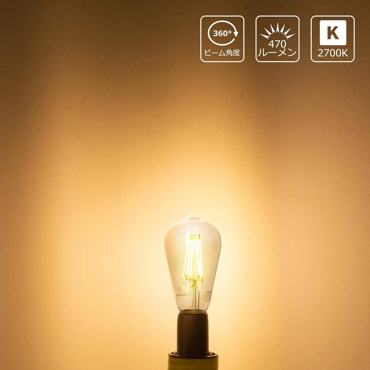 Lepro led電球 e26 エジソン電球 40W形相当 4W 電球色 2700K 全方向タイプ エジソンバルブ エジソンランプ ST64 琥珀色 450lm フィラメント 電球 レトロ電球 調光器非対応 アンティーク おしゃれ 省エネ PSE認証済み シーリング ペンダント スタンド ブラケット適用 間接照明 装飾電球 6個入り[100012-WW-JP-6]