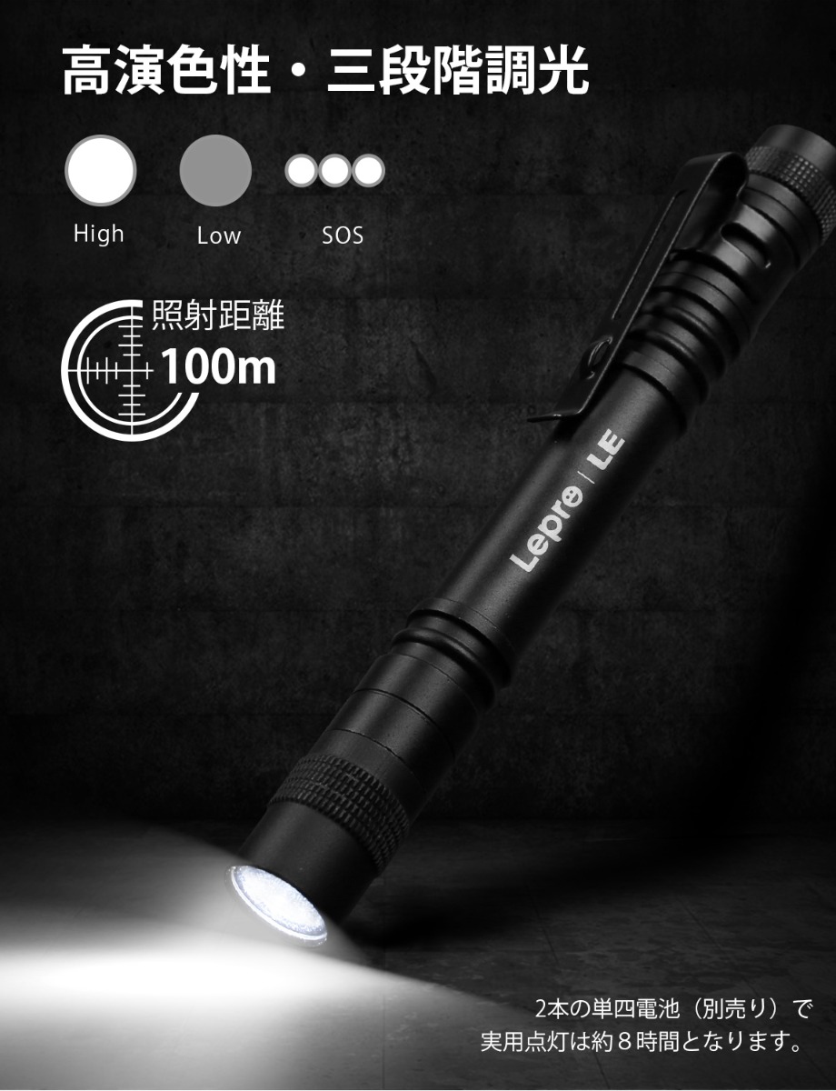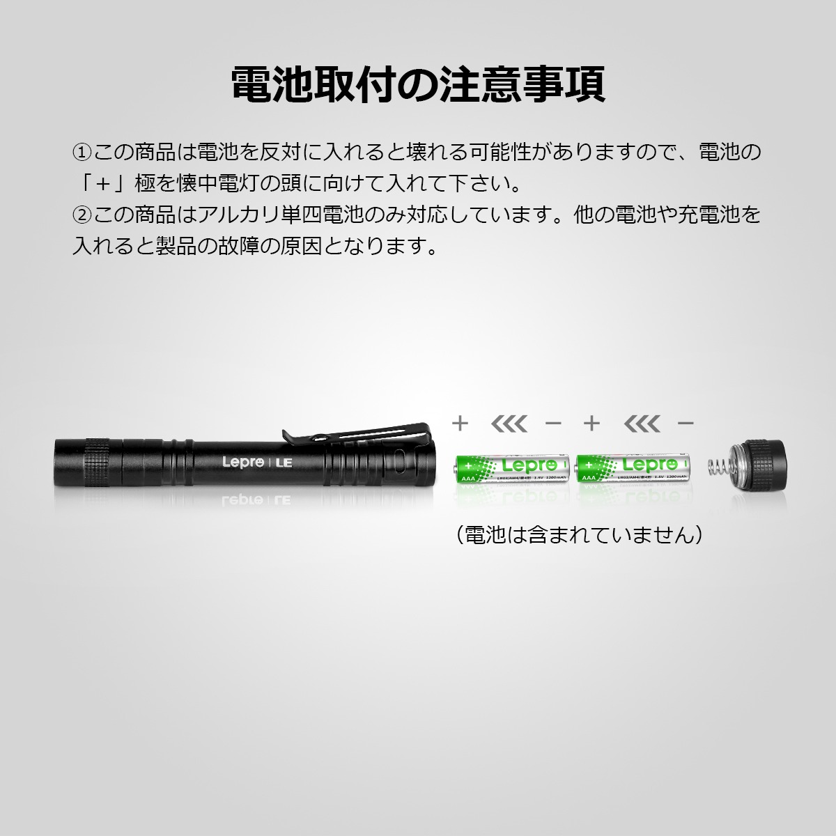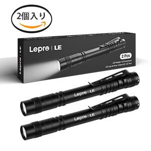 Lepro LED 懐中電灯 小型 ペンライト 2個セット 【高輝度/明るさ120ルーメン/3段階調光/防水/アルミ合金製/高耐久】 クリップ付き 携帯便利 作業 防災 ライト ハンディライト 単四電池対応(充電池対応不可) 2個入[120023-2]