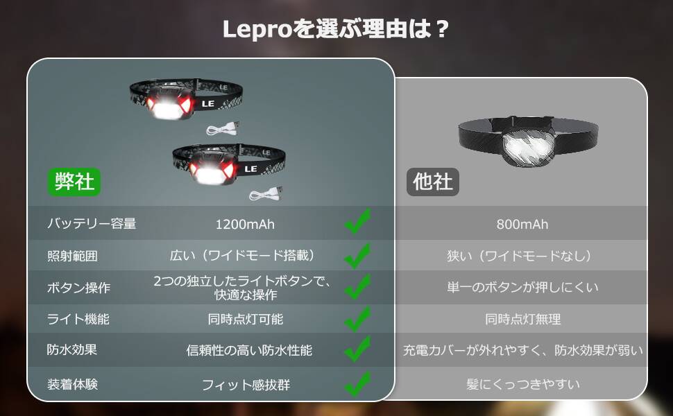 - 【適格請求書・パッケージ内容】インボイス制度が導入されており、適格請求書の発行対象となる商品です。購入履歴からの適格請求書発行:対応可能。LeproヘッドライトはCEとROHS認証済みなので、ご安心ください。パッケージ内容:LEDヘッドライト*2、USB-C充電ケーブル*2、取扱説明書*1。