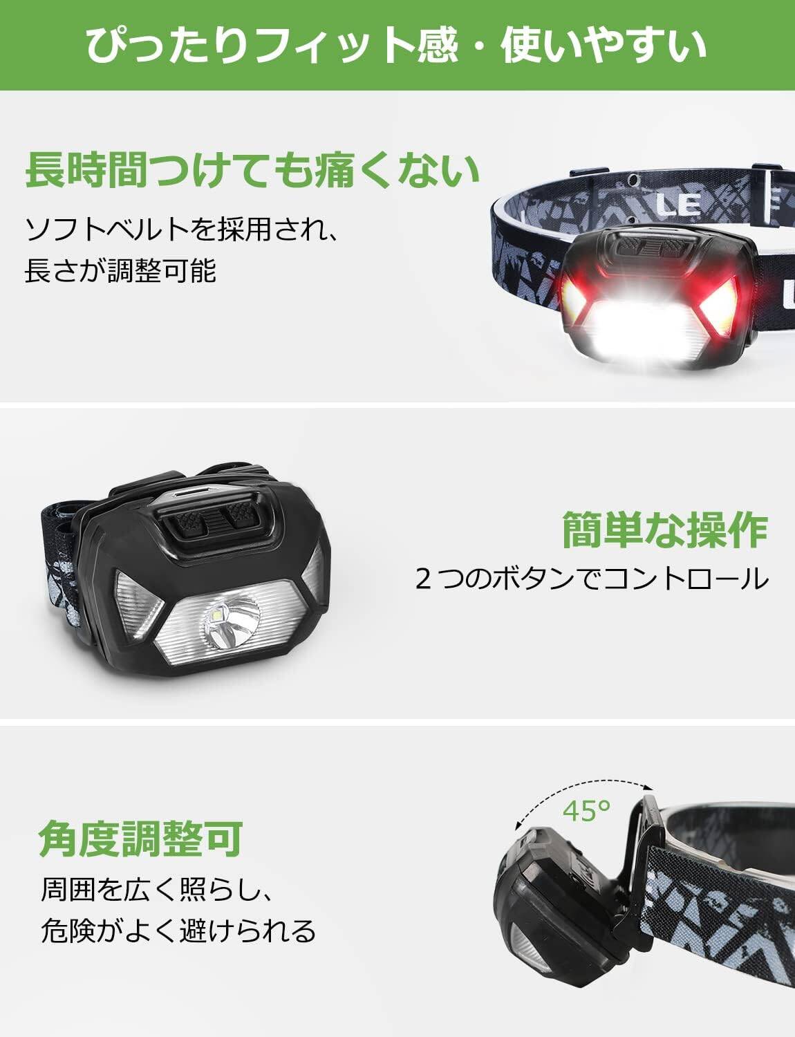 - 【軽量&フィット感】ヘッドライト本体の重さは約75gと非常に軽量です。また、ソフトベルトを採用し、夜釣りなどの場合は長時間装着しても首にストレスを与えません。登山、釣り、キャンプ、ハイキングや自動車整備などでのアウトドア活動に活躍します。