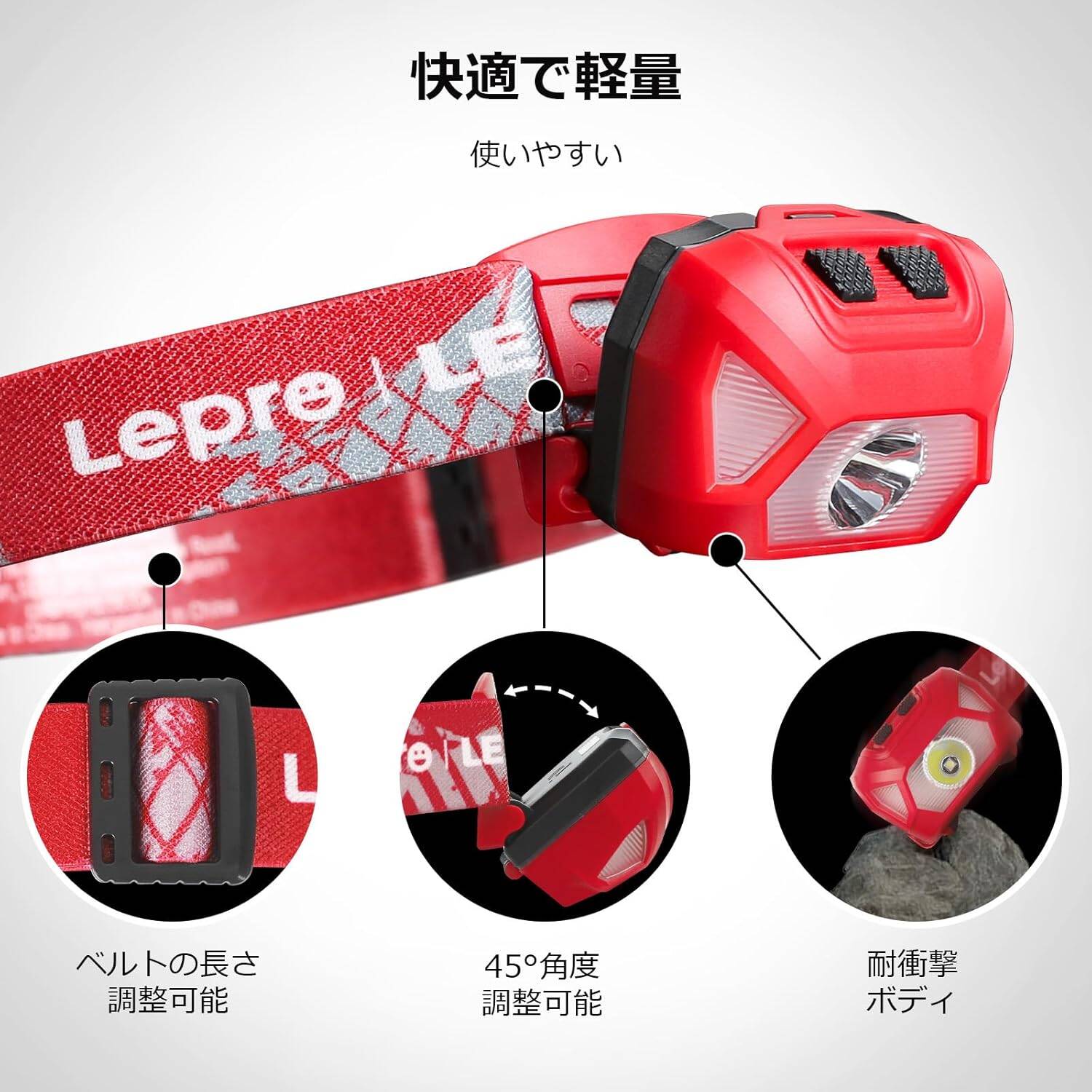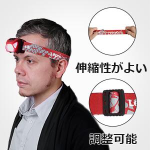 点灯モードだけでなく、ストラップの長さも調整可能で、帽子やヘルメットなどに装着しても問題ありません。