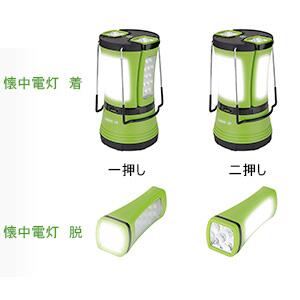 ※ご注意:懐中電灯は充電式ではありません。ランタンにセットしている時はランタン本体から給電されます。懐中電灯1個につき単4乾電池×3本(付属)が必要です。
