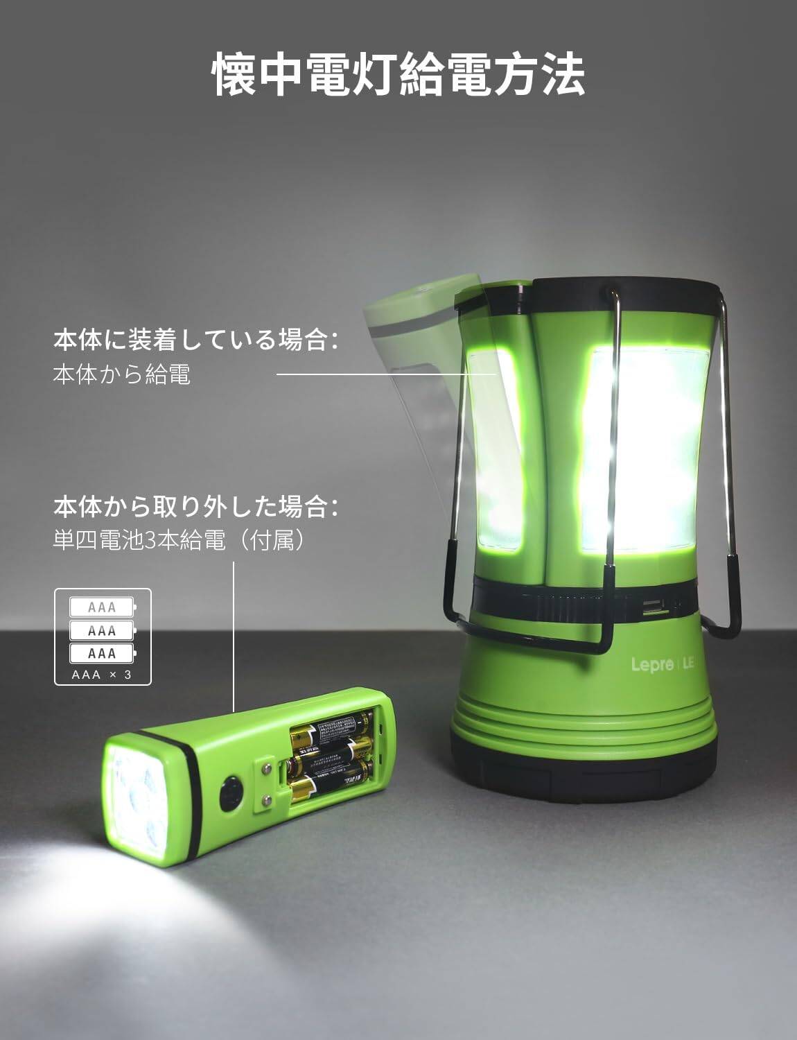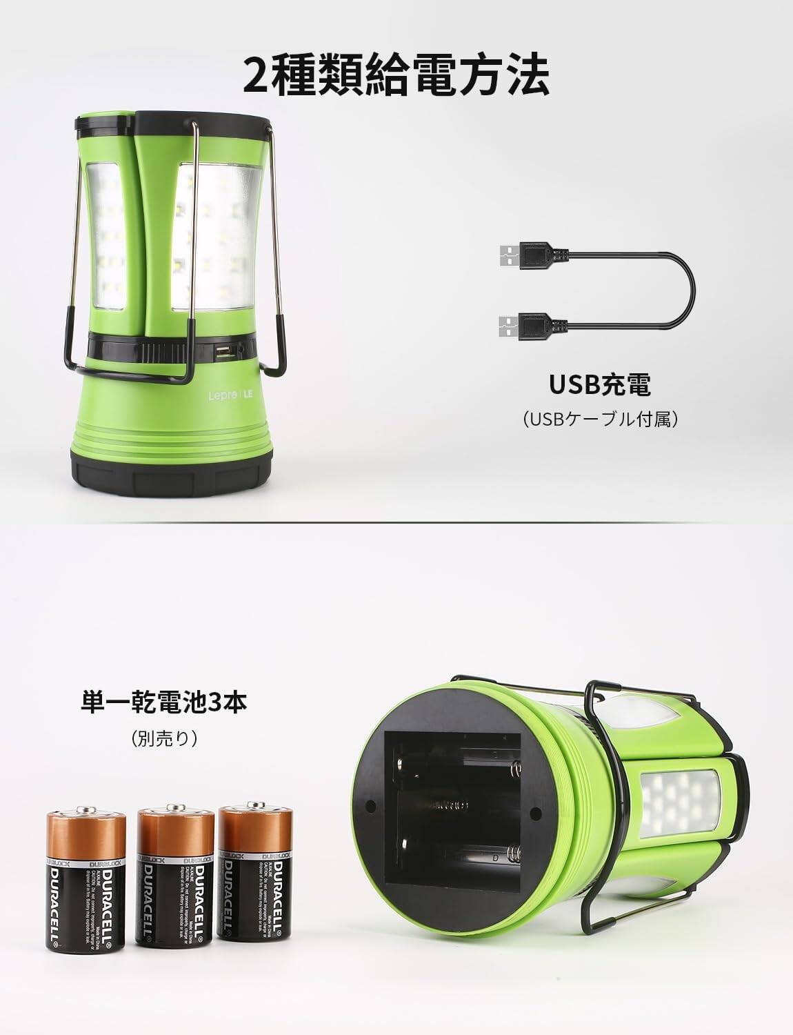 Lepro ランタン ledランタン キャンプランタン 懐中電灯 2本分離できる 【充電式と乾電池併用/最大33~66時間点灯/昼光色/高輝度タイプ/防水防滴】 USBケーブルと車用充電器付き 車中泊用 バーベキュー キャンプ 夜釣り 台風 災害 常備灯 停電 緊急 非常用 防災 ライト [3300012-DW]