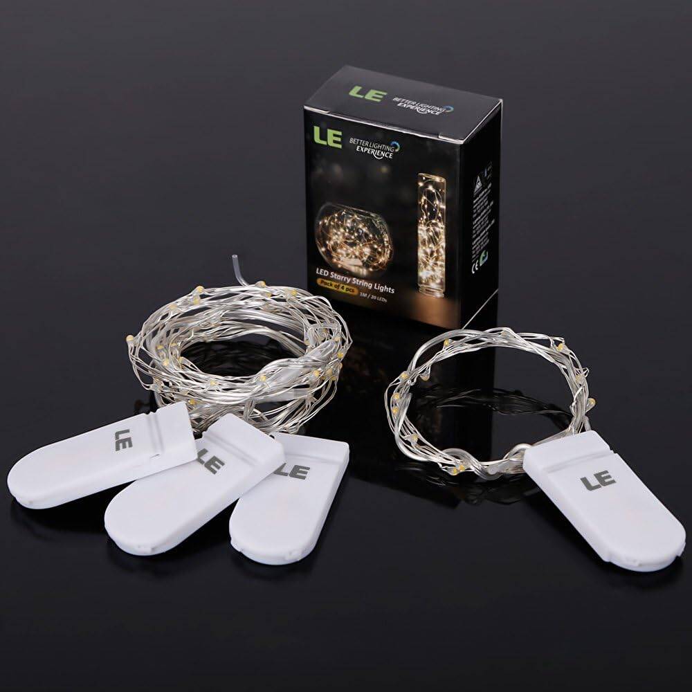 Lighting EVER LEDストリングライト 電池式フェアリーライト LEDイルミネーション 1m 20LED 電球色 防水銅線ワイヤー ハロウィン 飾り付け クリスマス飾り 結婚式 パーティー 装飾ライト クリスマスツリー電飾 おしゃれ 4個パック ボタン電池8個付属[4300009-WW-4]