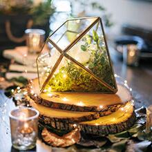 室内植物に飾って、柔らかい光で雰囲気を作ります。点灯していないときライトは隠してほとんど見えません。