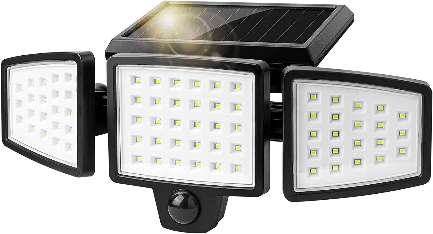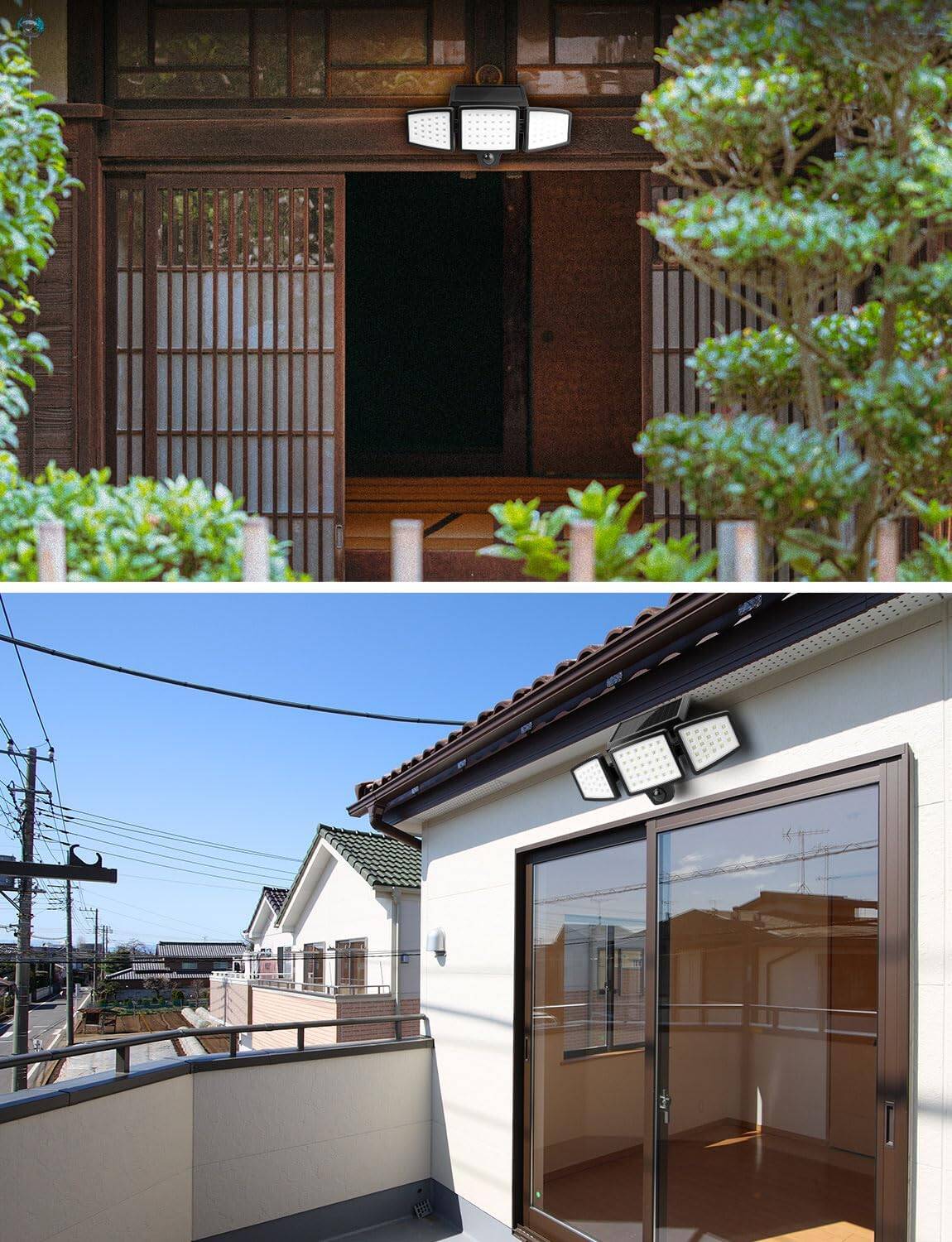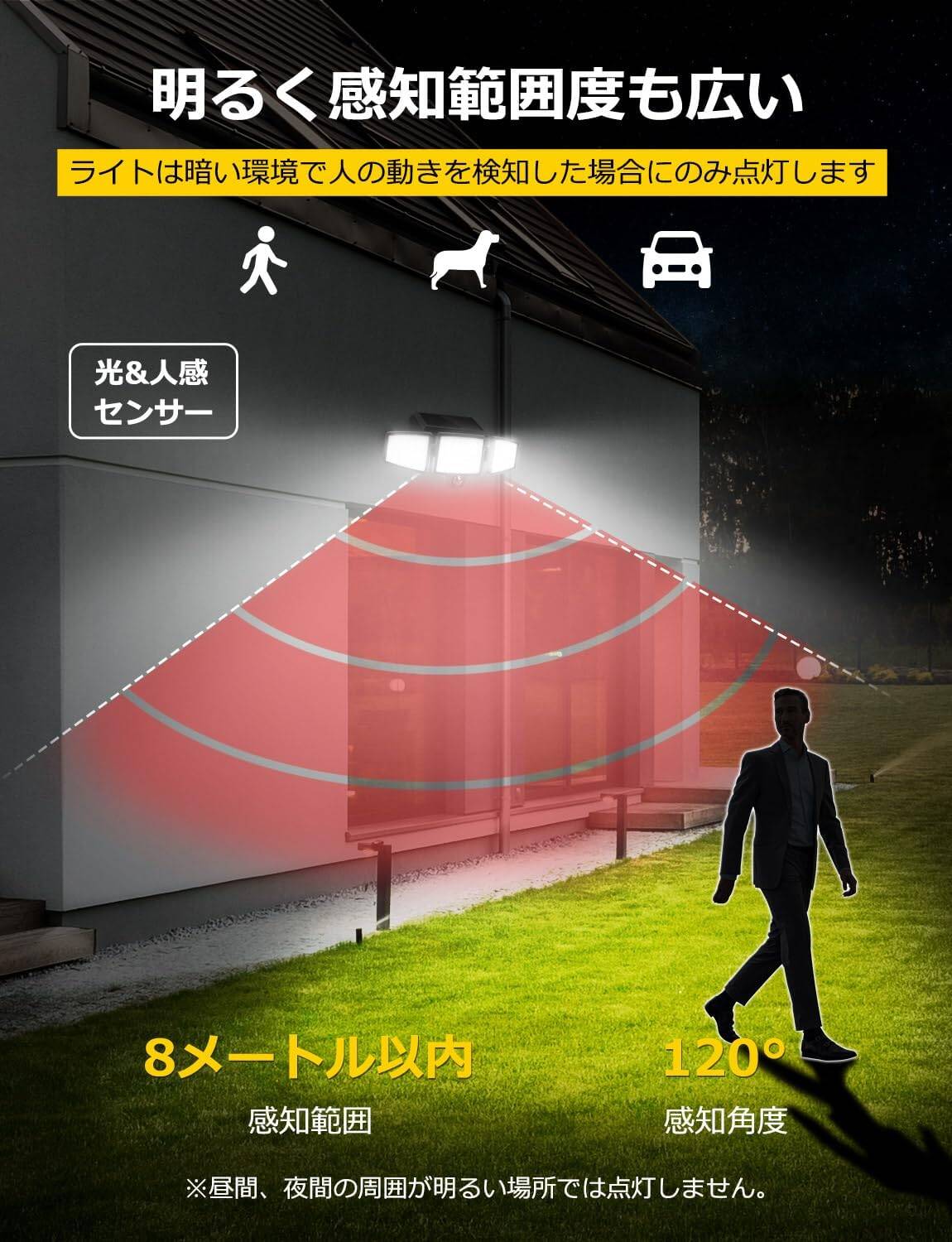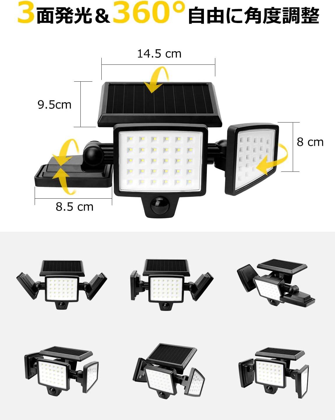 ソーラーライト 屋外 防水 センサーライト 屋外 ソーラー 人感センサーライト 屋外 LED投光器 太陽光充電 電気代不要 光&人感センサー 自動点灯消灯 【超高輝度LED搭載/1200ルーメン/3面発光/360°角度自由調整/防水防雨】 壁掛け式 防犯ライト ガーデンライト 屋外/軒/庭/ガーデン/玄関/駐車場/車道/ガレージ 防犯対策 停電・災害時に適用 [640003-DW-JP]