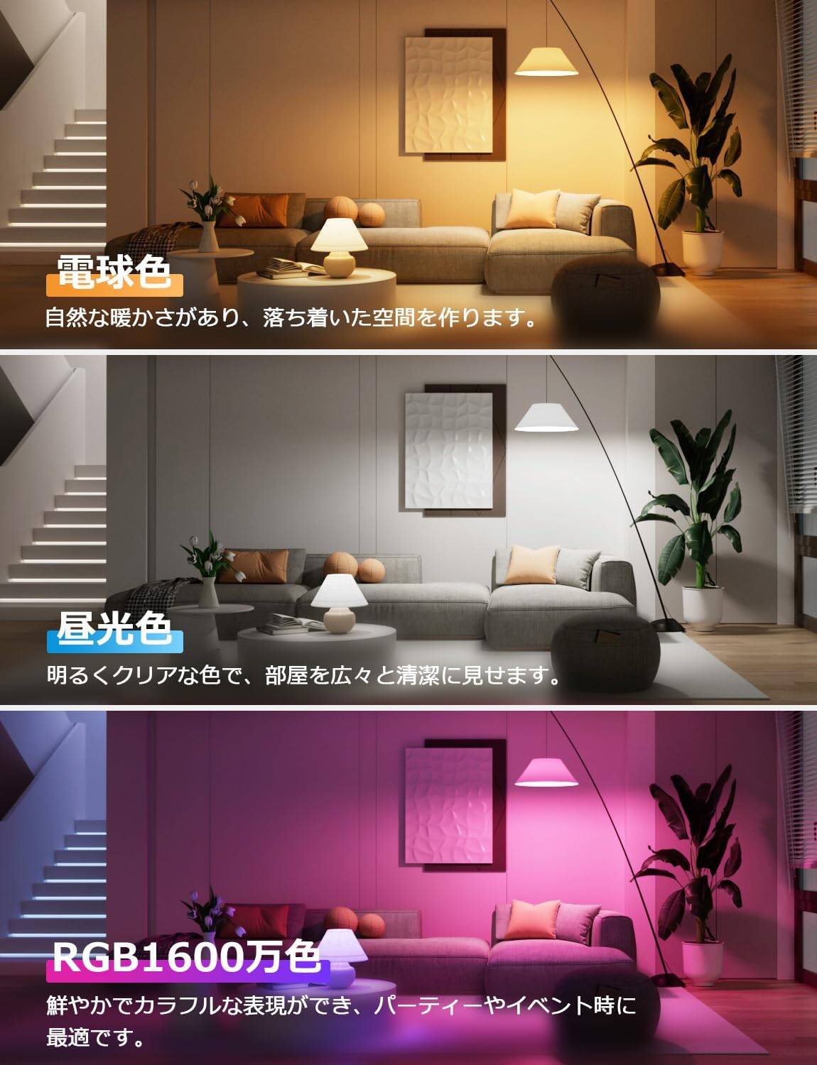 | 色: | CCT2700K-6500K(電球色+昼白色+昼光色)+RGBフルカラー(1600万色) |