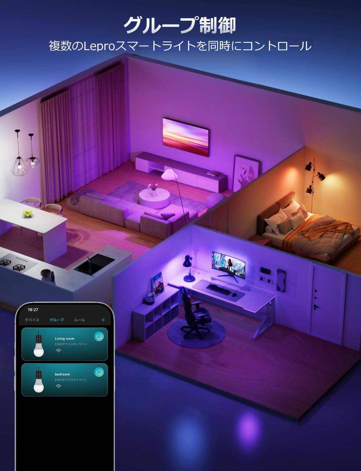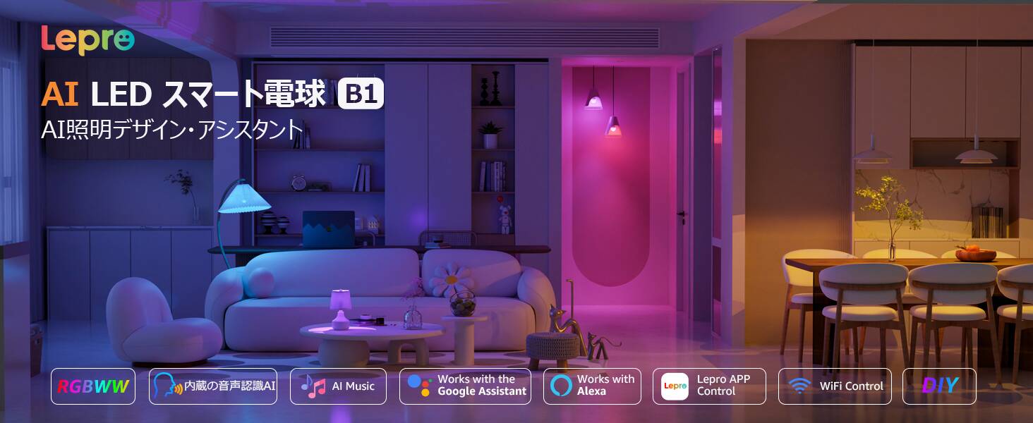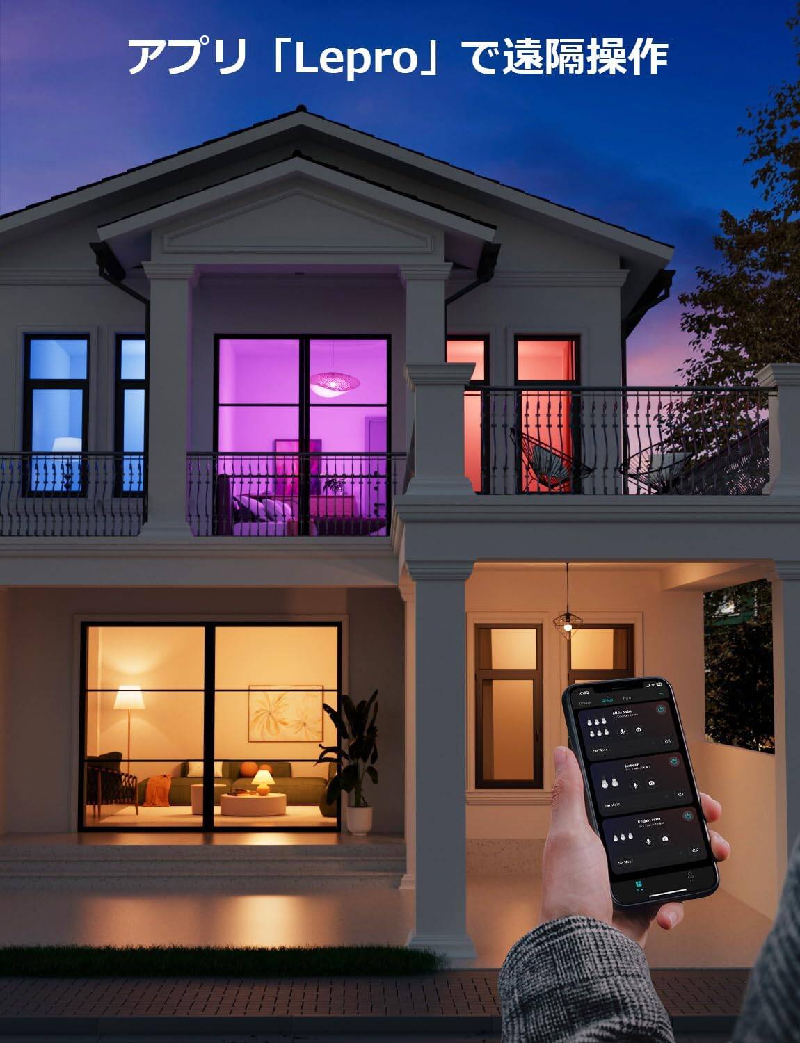 - 【使い方が簡単-内蔵の音声認識で照明効果を生成】アプリ「Lepro」には新開発の対話型生成AIが組み込まれており、音声コマンドでON/OFF、調光調色、動的効果などの調整ができます。さらに、Lepro AIに話しかけることで、AIが何千兆もの照明効果と色の組み合わせから最適なものを提案します。例えば、「クリスマス/読書したい/リラックスした気分/パーティー」などの指示もAIによって最適な照明効果がデザインされます。高効率・簡単なやり取りで、すっきりした簡潔な照明体験をお楽しみください。