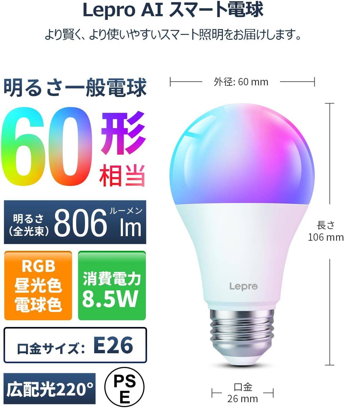 Lepro B1 AI E26 LED スマート電球 Alexa対応 AI照明効果デザイン 60W形 スマート照明 スマートホーム レプロ(4個入り)