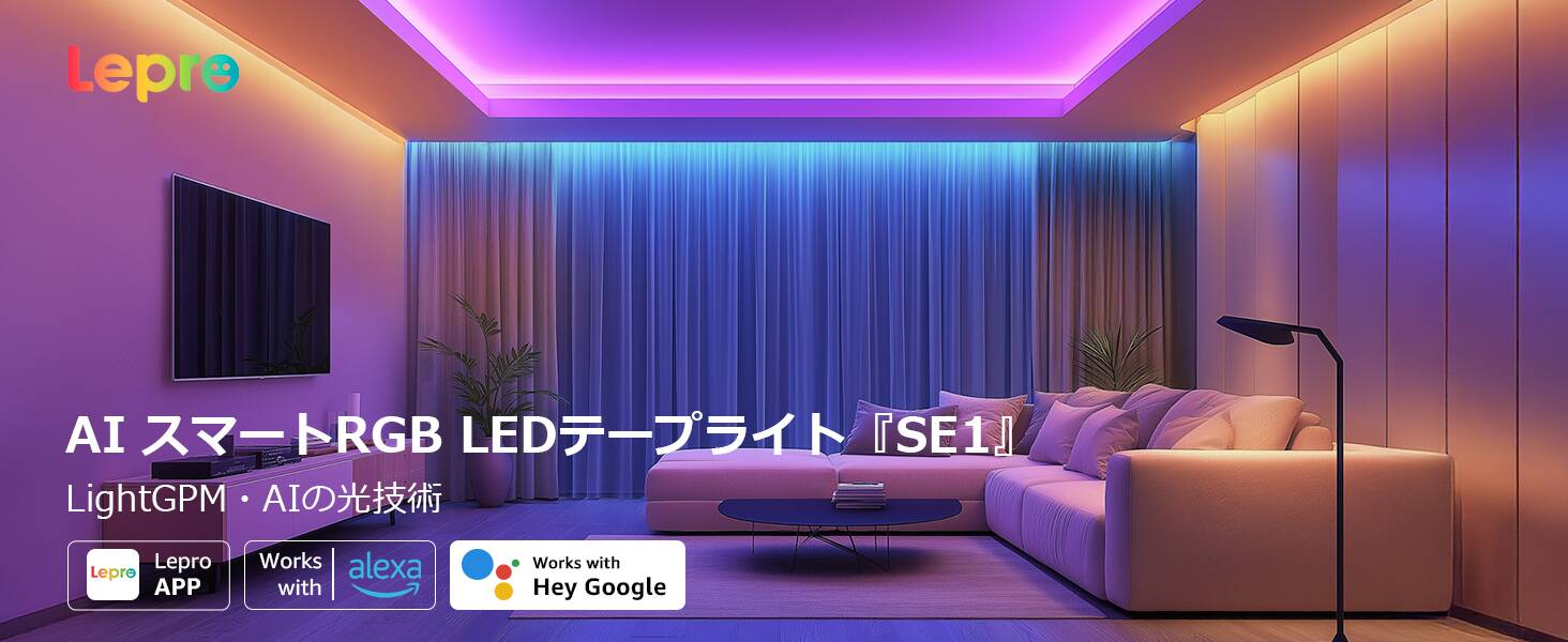 Lepro SE1 スマート ledテープライト 20m AI照明効果デザイン AI生成光 音楽連動 Alexa対応 1600万色 間接照明 ledテープ