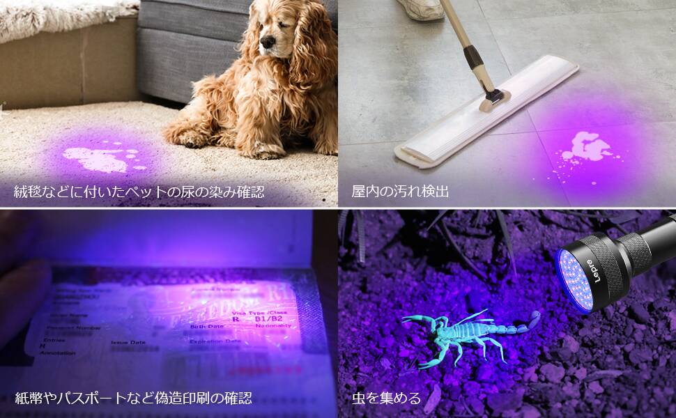 - 【見えないペットのおしっこ汚れ対策】尿の飛び散りなど便所掃除のチェックにも使用できます。照射範囲が広いので確認しやすいです。