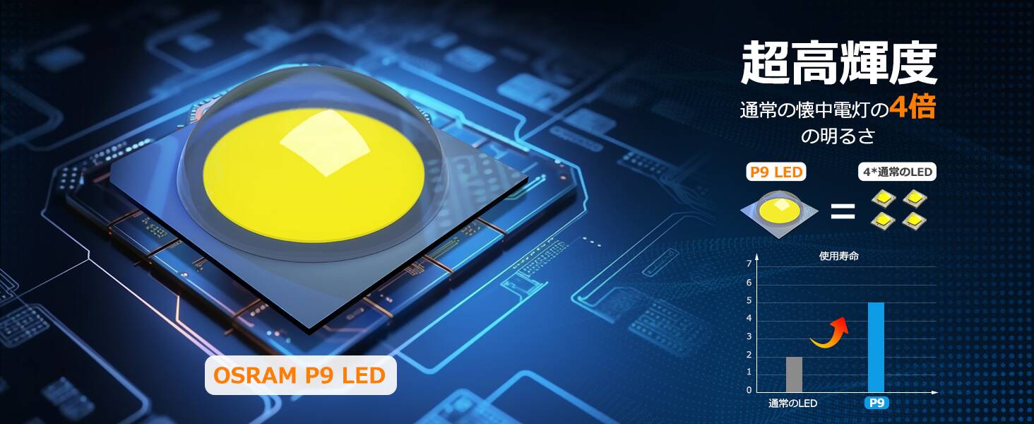 高品質OSRAM社製P9 LEDチップ搭載、圧倒的な明るさ!戸外でも室内でも最高のパフォーマンス!