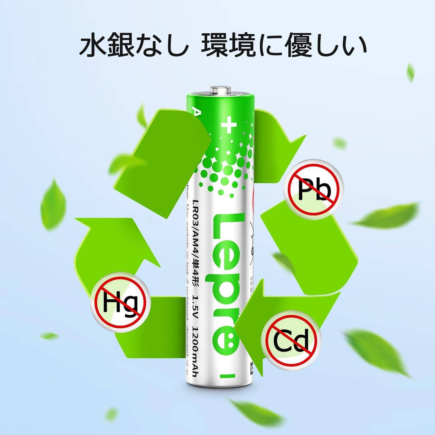 - 【商品仕様】電池の形: 単4形(AAA) | 電池セールの構成: アルカリ(水銀0使用)| 電圧: 1.5V | 容量: 1200mAh | サイズ: 直径10x高さ43.9mm | 本体重量: 約11g/本| 再利用可能性: 使い捨て(充電禁止)| パッケージ商品数:24本