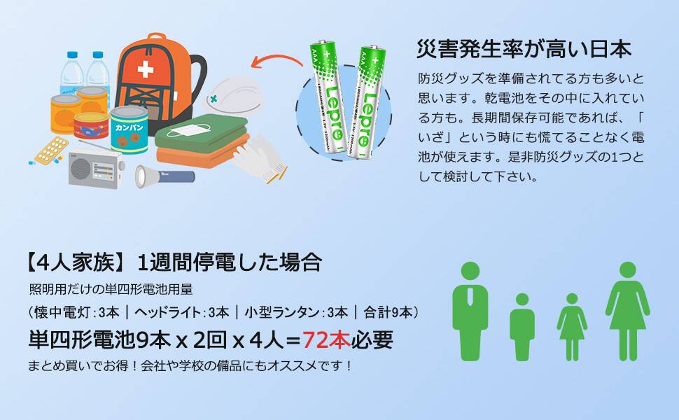 - 【優れた品質・長期間保存可能】高品質で長期間保存可能だから、非常用持出袋、乾電池式モバイルバッテリー、電池式ランタン、懐中電灯、ヘッドライトなどの防災用ストックにもおすすめします。
