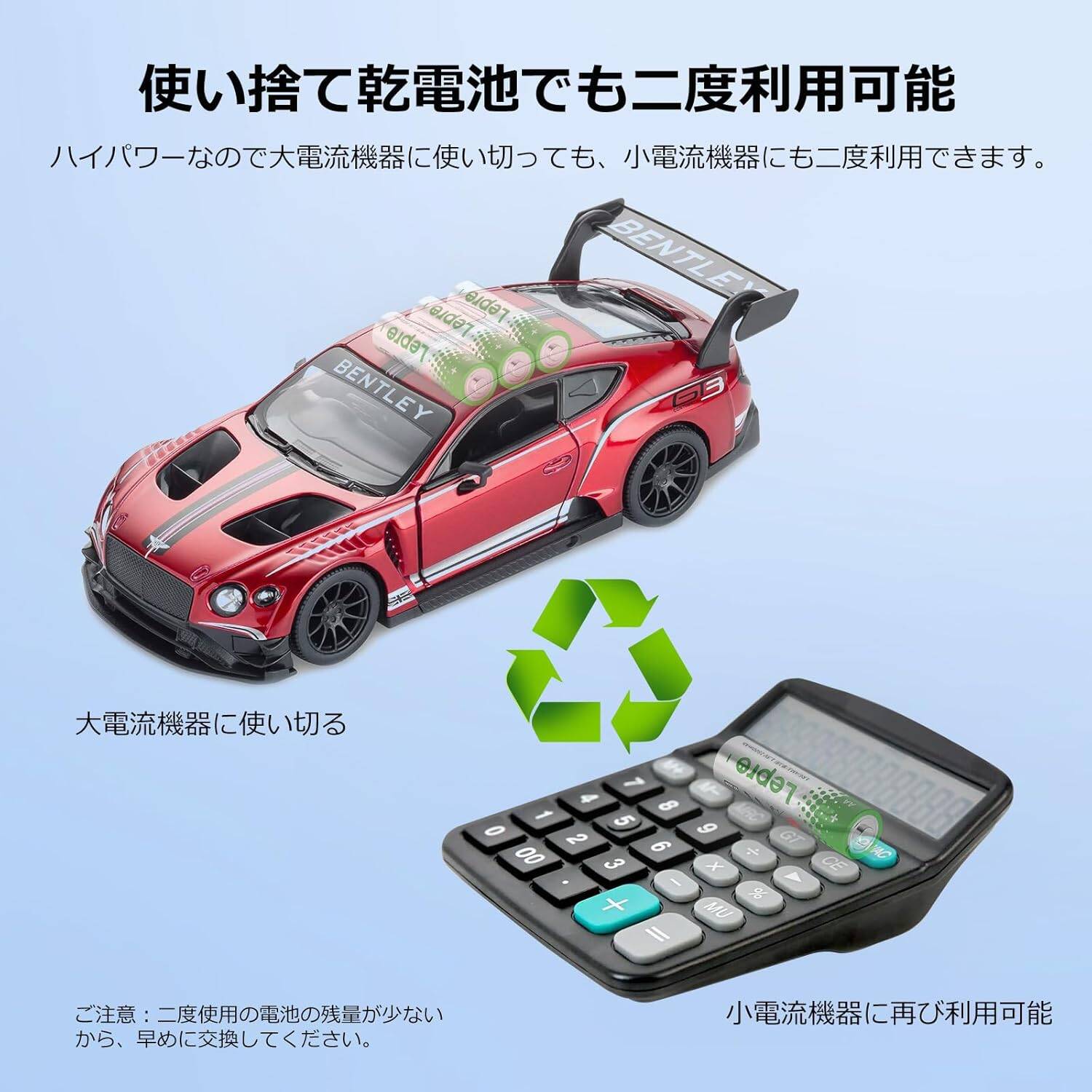 リモコン、携帯ラジオ、電動歯ブラシ、乾電池シェーバー、コードレス理美容機器、ワイヤレスマウス、電池式おもちゃ、電卓、体重計、温度計などの普段使いはもちろん、長時間保存可能だから、LED懐中電灯、LEDランタン、LEDヘッドライトなどの防災用ストックにもおすすめします。