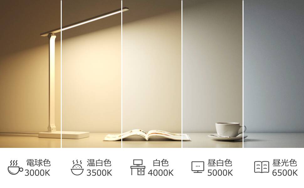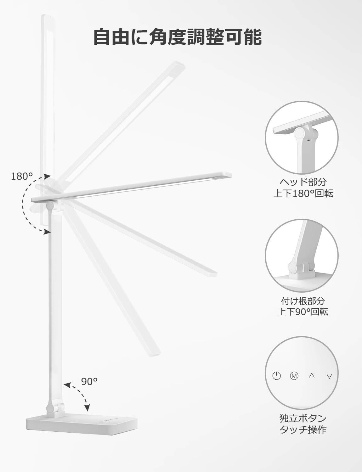 - 【超高輝度・5段階調色調光】最大800ルーメンの明るさを実現し、他の製品より明るく、作業や勉強などに最適!5段階の調色&調光機能が搭載され、使用シーンに合わせて軽くタッチするだけで、お好みの色温度と明るさが調整できます。