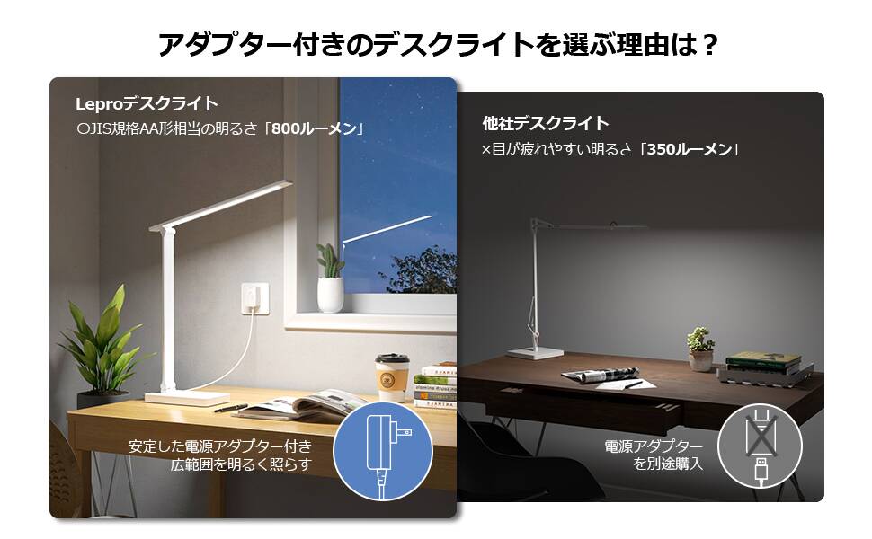 デスクライトは、読書、勉強、仕事など、毎日欠かせないものです。省エネで目に優しいLeproデスクライトがオススメ!