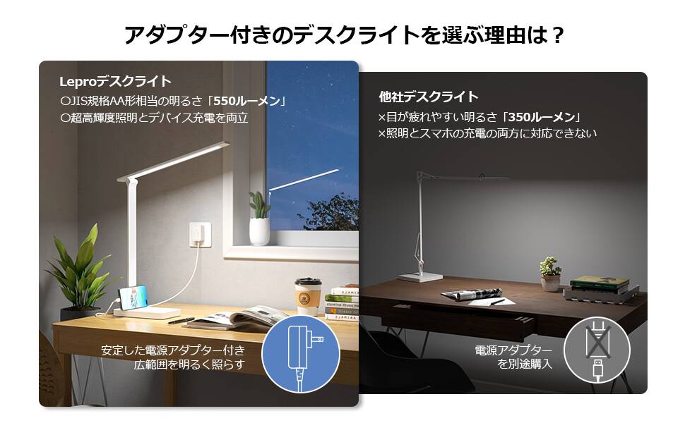 デスクライトは、読書、勉強、仕事など、毎日欠かせないものです。省エネで目に優しいLeproデスクライトがオススメ!