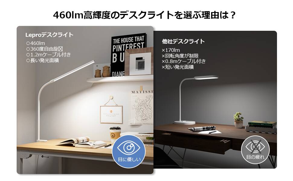疲れにくい快適な明るさ!