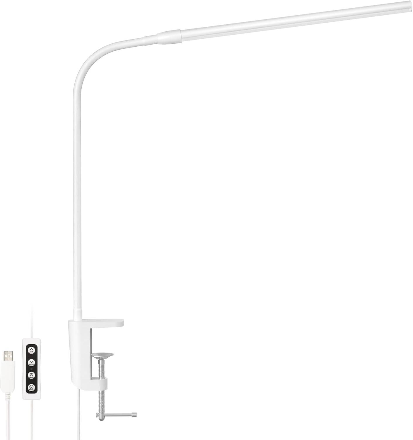 Lepro デスクライト クランプ led 目に優しい クランプライト スタンドライト 電気スタンド 【電球色・白色・昼光色/10段階明るさ/5W省エネ/Ra80演色/明るい/独立ボタン制御/360°角度調整可能/USB給電式/1.5Mケーブル】 テーブルライト 卓上ライト 台灯 卓上照明 勉強机 学習机 ライト ブックライト 読書灯 (ホワイト) [PR310005-DWW]