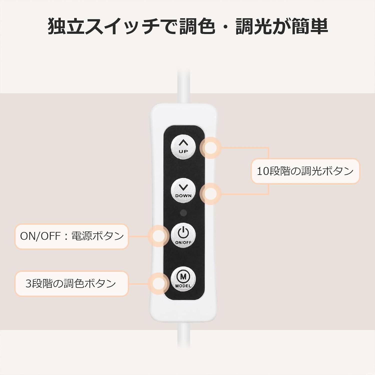 - 機能:3段階調色&10段階調光