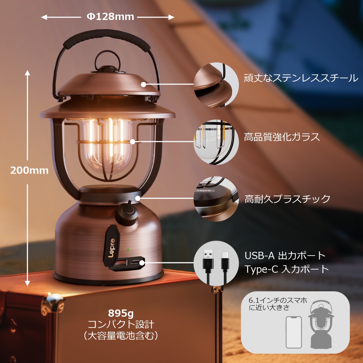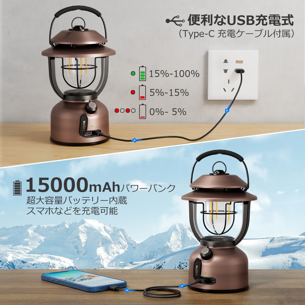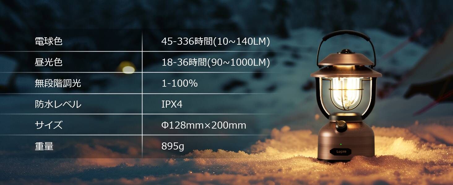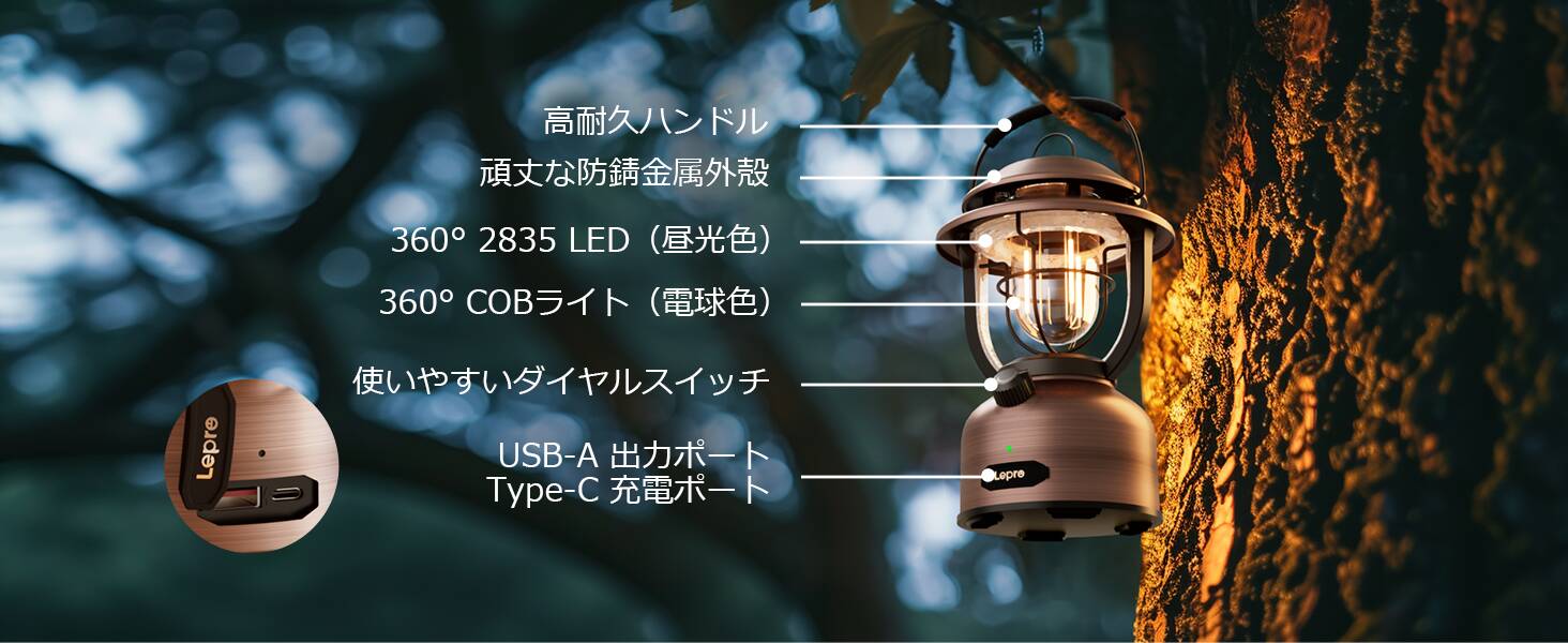 Lepro ランタン Type-C USB充電式 レトロ LEDランタン おしゃれ キャンプランタン アンティーク風 ソロキャンプ【連続点灯336時間/超高輝度1000ルーメン/暖色と白色切替/無段階調光/モバイルバッテリー機能/電池残量インジケータ付き】クラシカル らんたん アウトドア キャンプ 登山 夜釣り 防災 停電 緊急 非常用[PR330041]