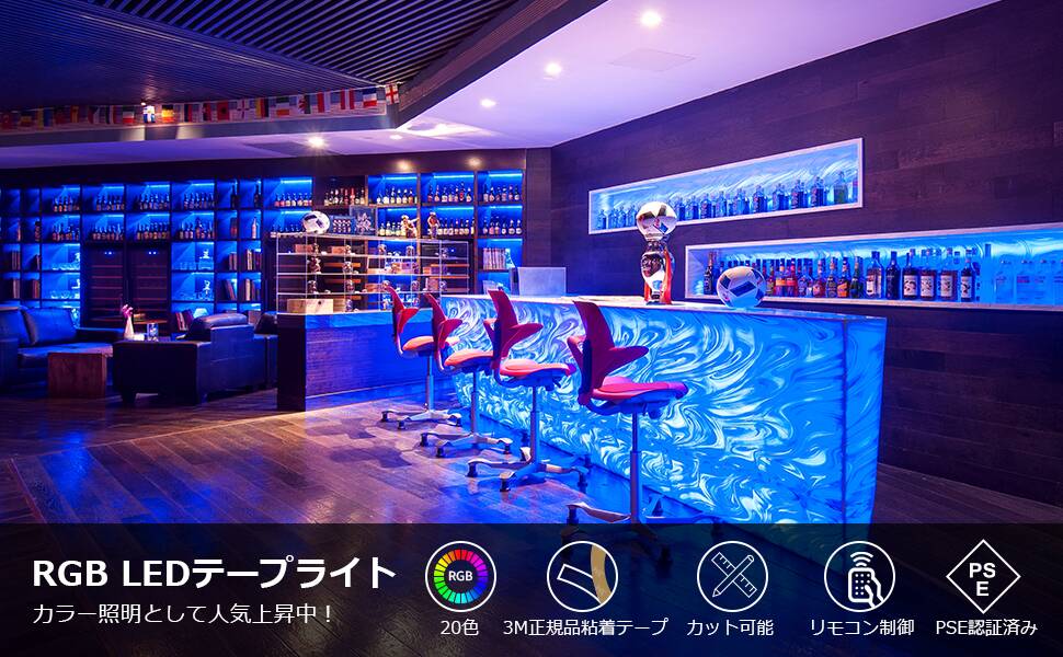 - 【省エネ・長寿命・メモリー機能】このLEDテープライトは36Wの低消費電力で、白熱電球と比べて電気代は約5分の1程度。省エネで経済的、また環境にも優しい製品です。家庭用の間接照明としても最適です。メモリー機能も備えており、ledテープライトはちゃんと電源を落としても最後に設定した動作を覚えておいてくれます。通電したら前回覚えておいた動作で点灯させることができます。