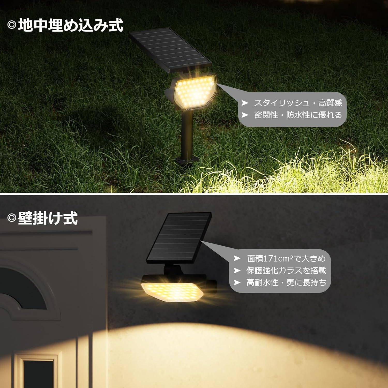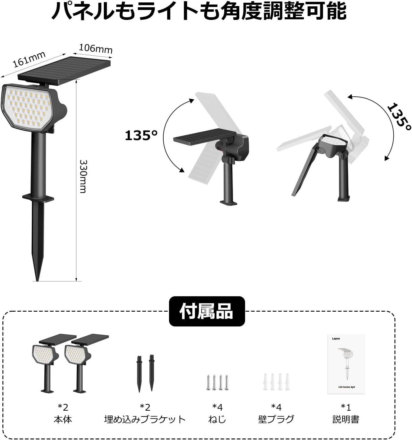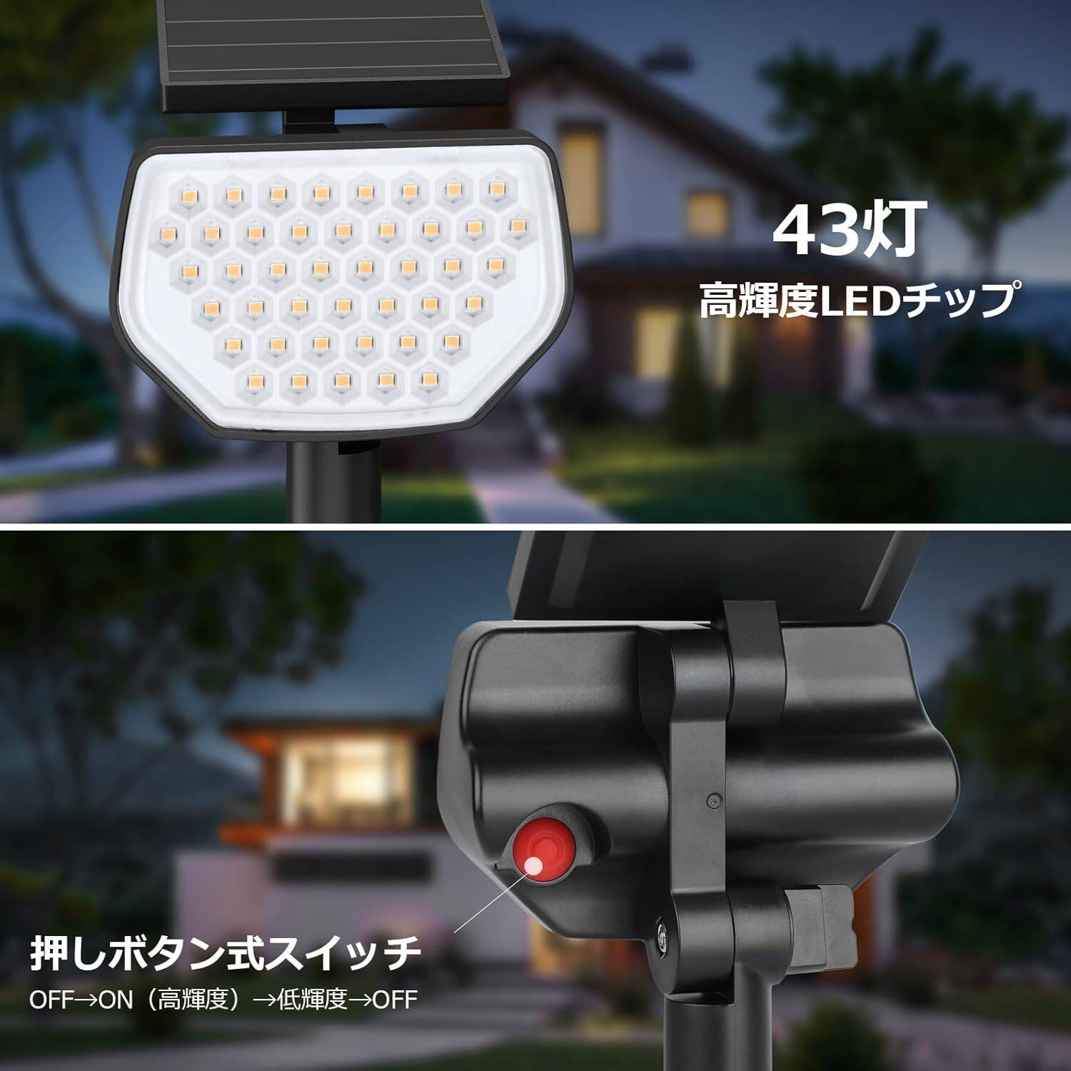 Lepro ソーラーライト 屋外 庭 ライト 防水 ガーデンライト アウトドア スポットライト 3000K 電球色 2段調光 常時点灯 光センサー 43leds 防犯 防災 IP65 夜間自動点灯/昼間自動消灯 地中埋込型 パスライト 芝生/車道/壁掛け/歩道/植木/玄関先 ライトアップ 配線不要 2個入り[PR510005-WW-2]
