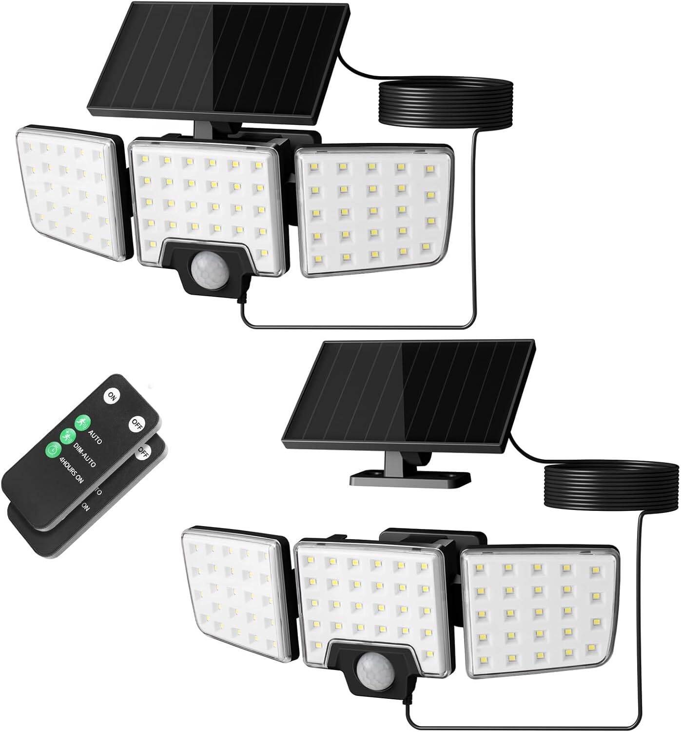 Lepro ソーラーライト 屋外 防水 人感センサー センサーライト 屋外 ソーラー 人感 一体型·分離型両用 3灯式 屋内・屋外使用可【リモコン操作/3つモード/高輝度/IP65防水】 人感センサーライト 壁掛け式 防犯ライト 太陽光ledライト 駐車場/玄関/軒/庭/ガーデン/ガレージ 屋外照明(2個セット) [PR640005-DW-JP-2]