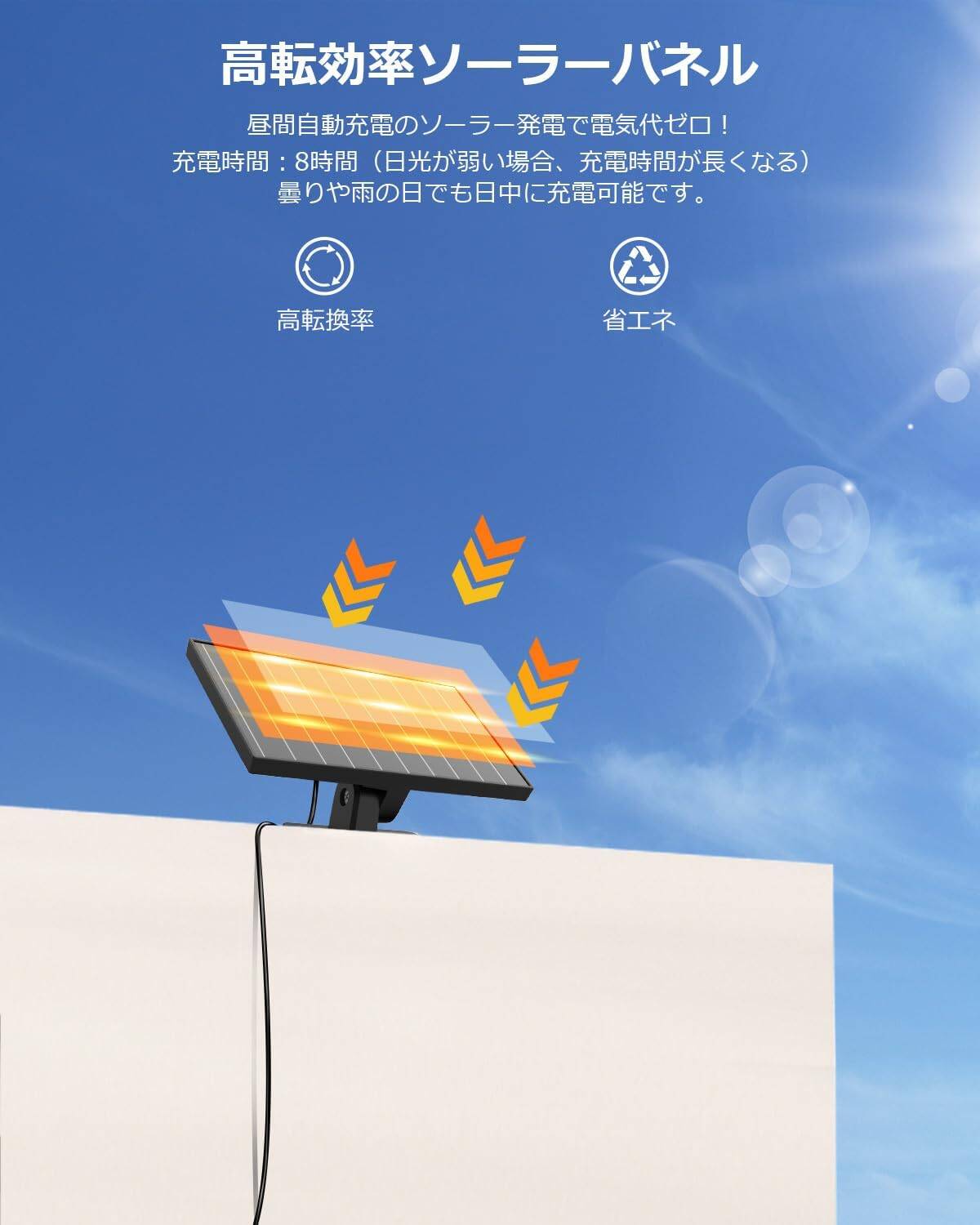 - 【省エネ&停電対策】コンセント電源に接続する必要がなく、一度スイッチをONにするだけで、日中の太陽光で充電され、省エネで電気代も一切不要です。地震や台風などの災害が発生しても、完璧な停電対策として照明機能を維持できます。玄関先やガレージの入り口に設置するLED投光器としてもおすすめです。