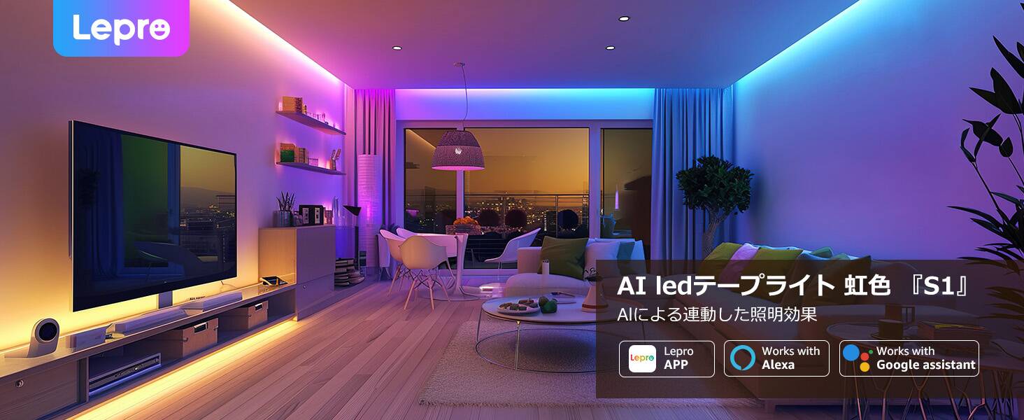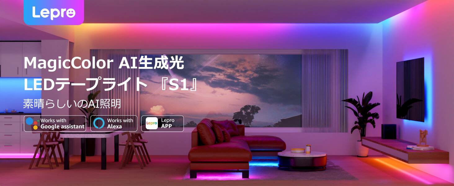 Lepro S1 スマート ledテープライト 5m AI照明デザイン アシスタント AI生成光 虹色 流れる 音楽連動 Alexa対応 間接照明
