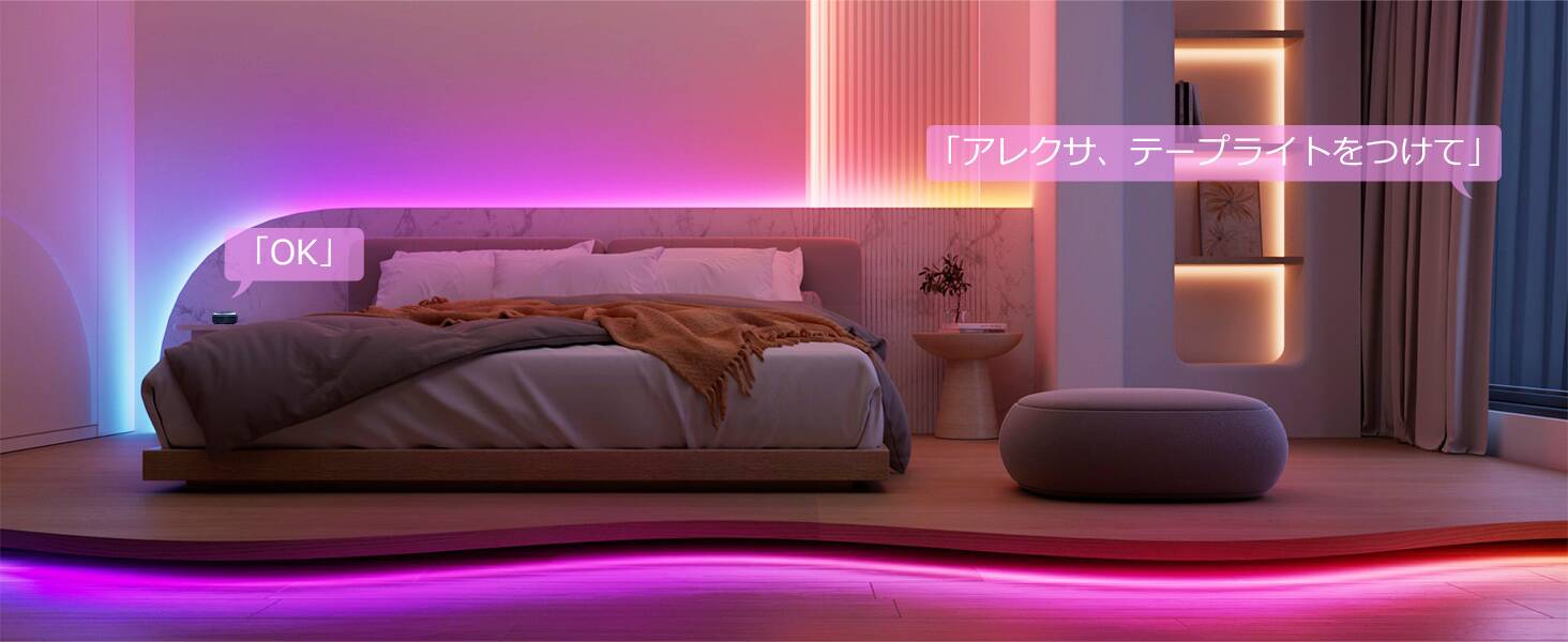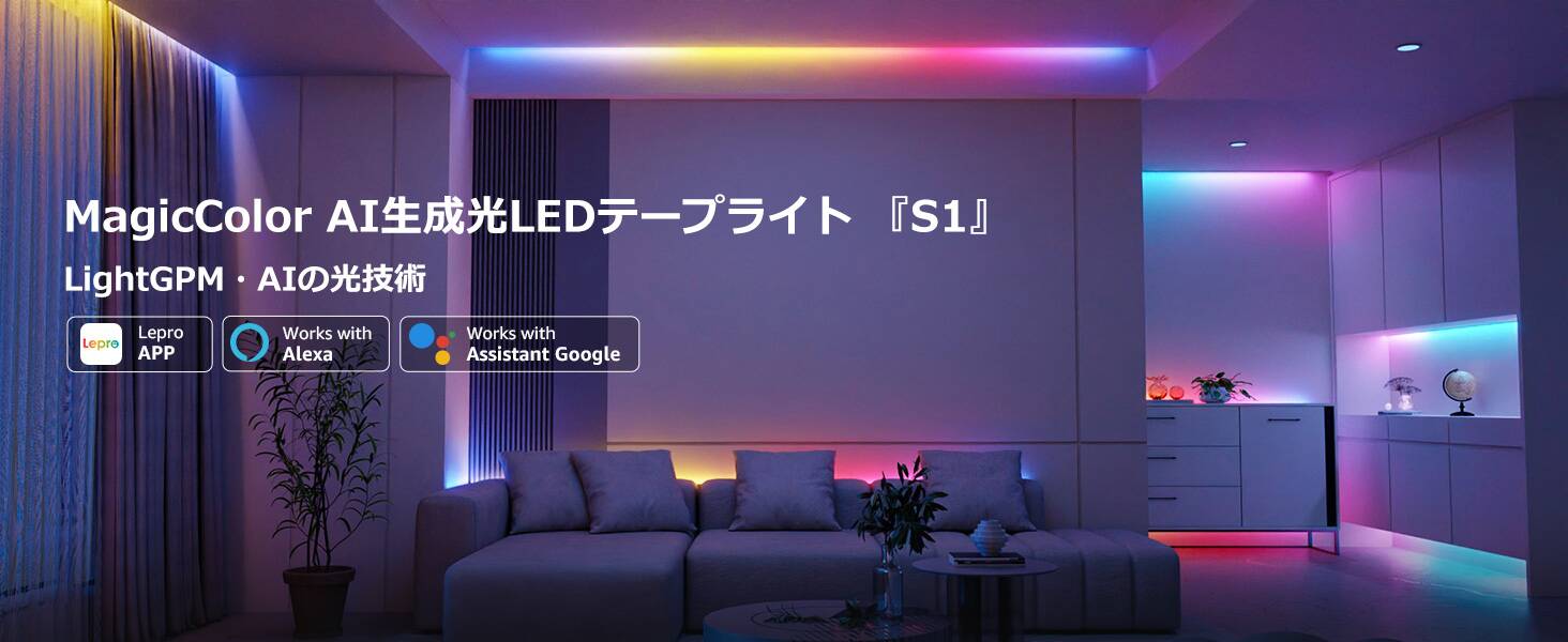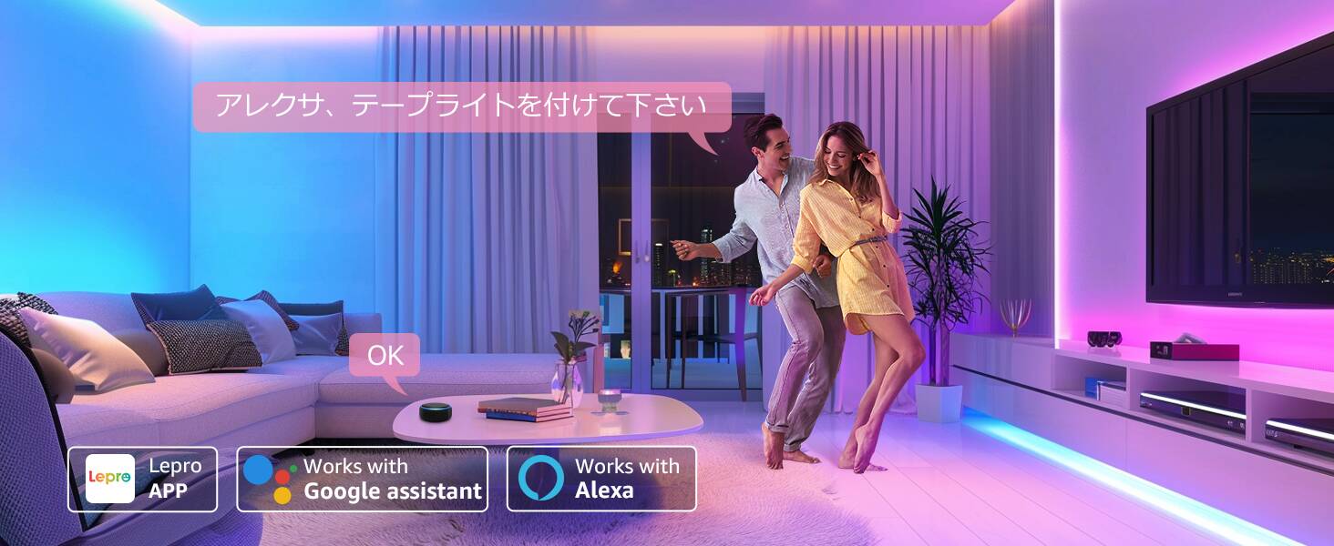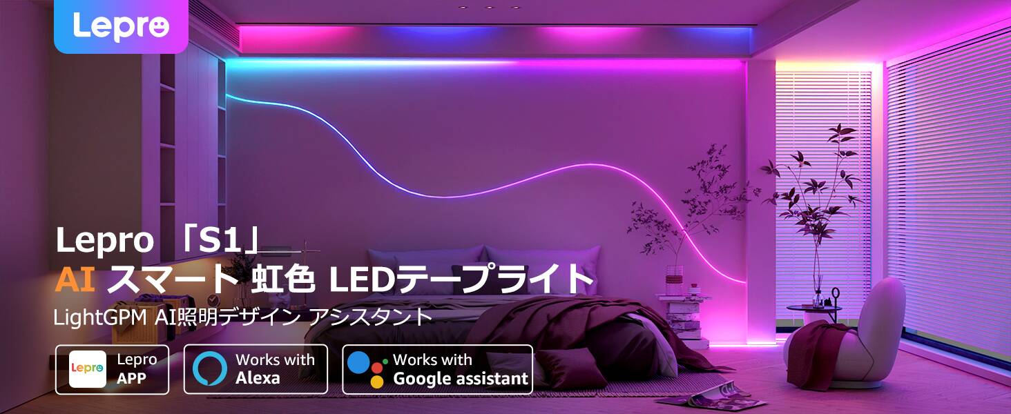 - 【Amazon Alexa/Google アシスタント対応】:Lepro LightGPMスマートテープライトは、Amazon AlexaやGoogle アシスタントと連携することができ、音声で簡単にライトをコントロールできます。手が離せない時でも、 声でON/OFFの操作や調光調色が可能ですので、より便利でスマートなライフスタイルを実現します。