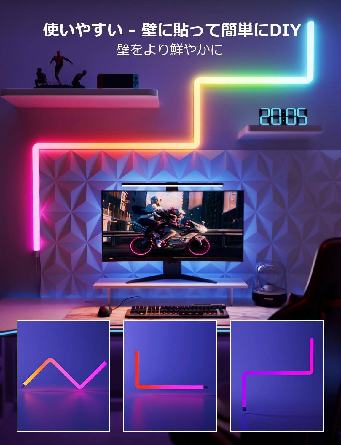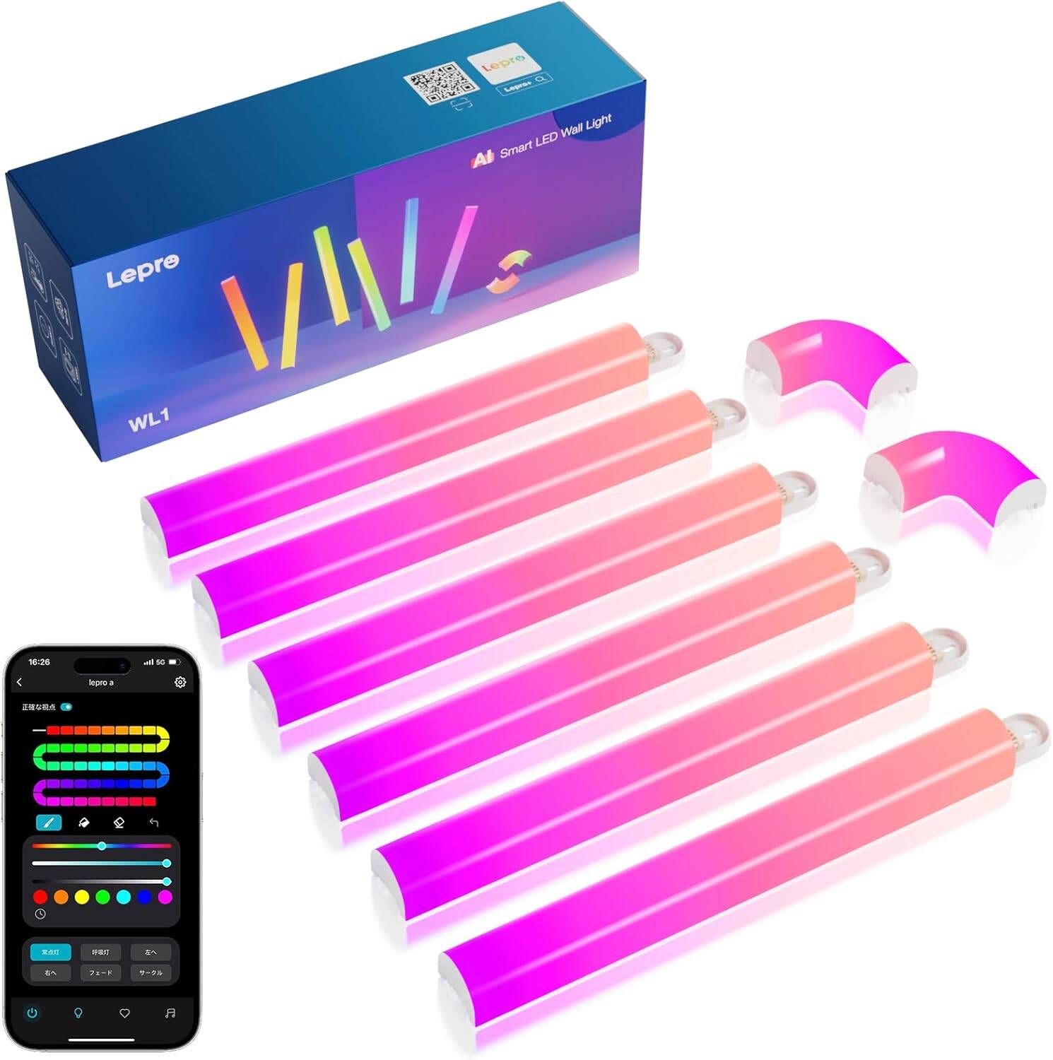 Lepro AI バーライト WL1 貼るだけ 取付簡単:「Lepro AIに話しかけて、照明効果を自動作成」