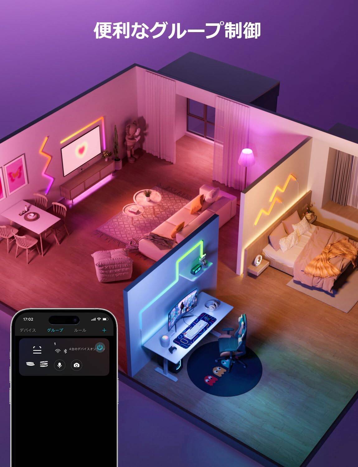 Lepro AIはシーンにぴったりな点灯効果を自動作成致します。